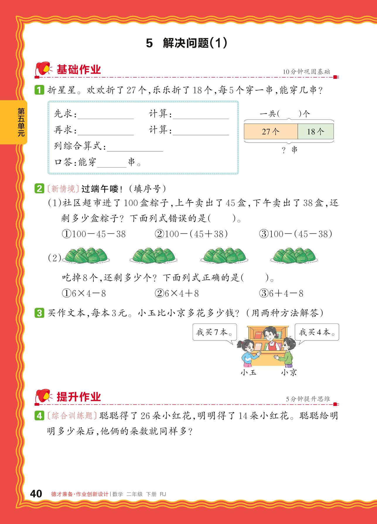 2024春下册二年级数学人教版 第五单元 混合运算——5. 解决问题(1)