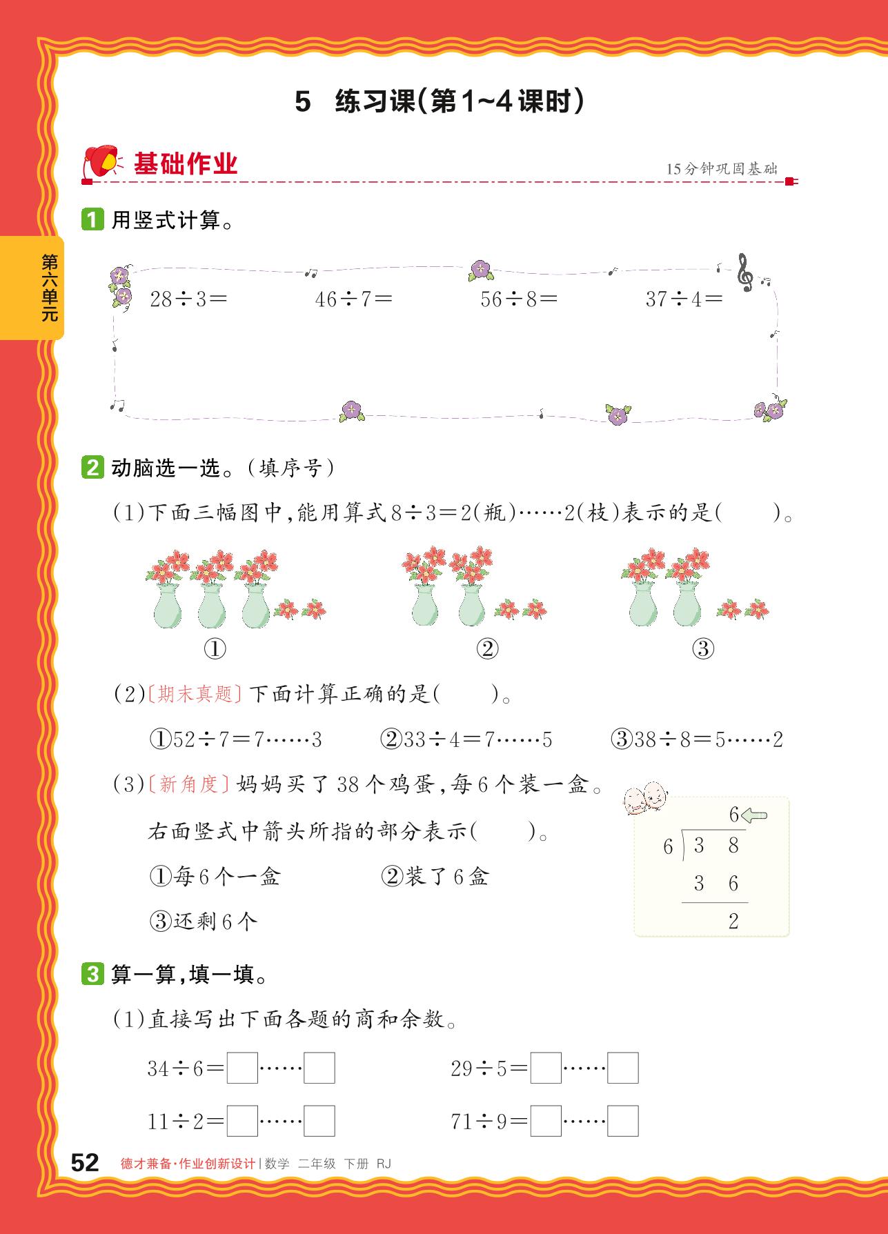 2024春下册二年级数学人教版 第六单元 有余数的除法——5. 有余数的除法练习课