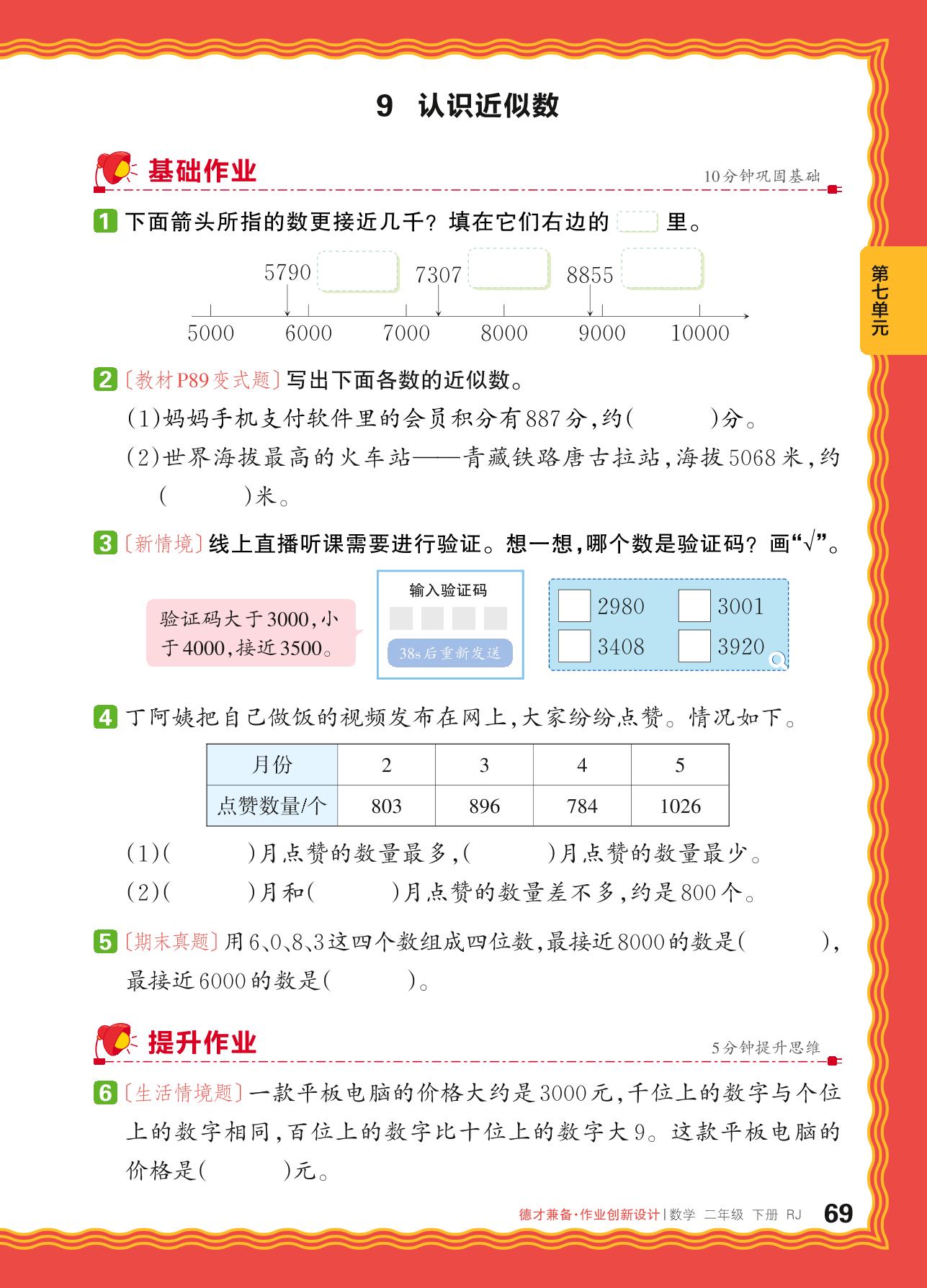 2024春下册二年级数学人教版 第七单元 万以内数的认识——9. 认识近似数