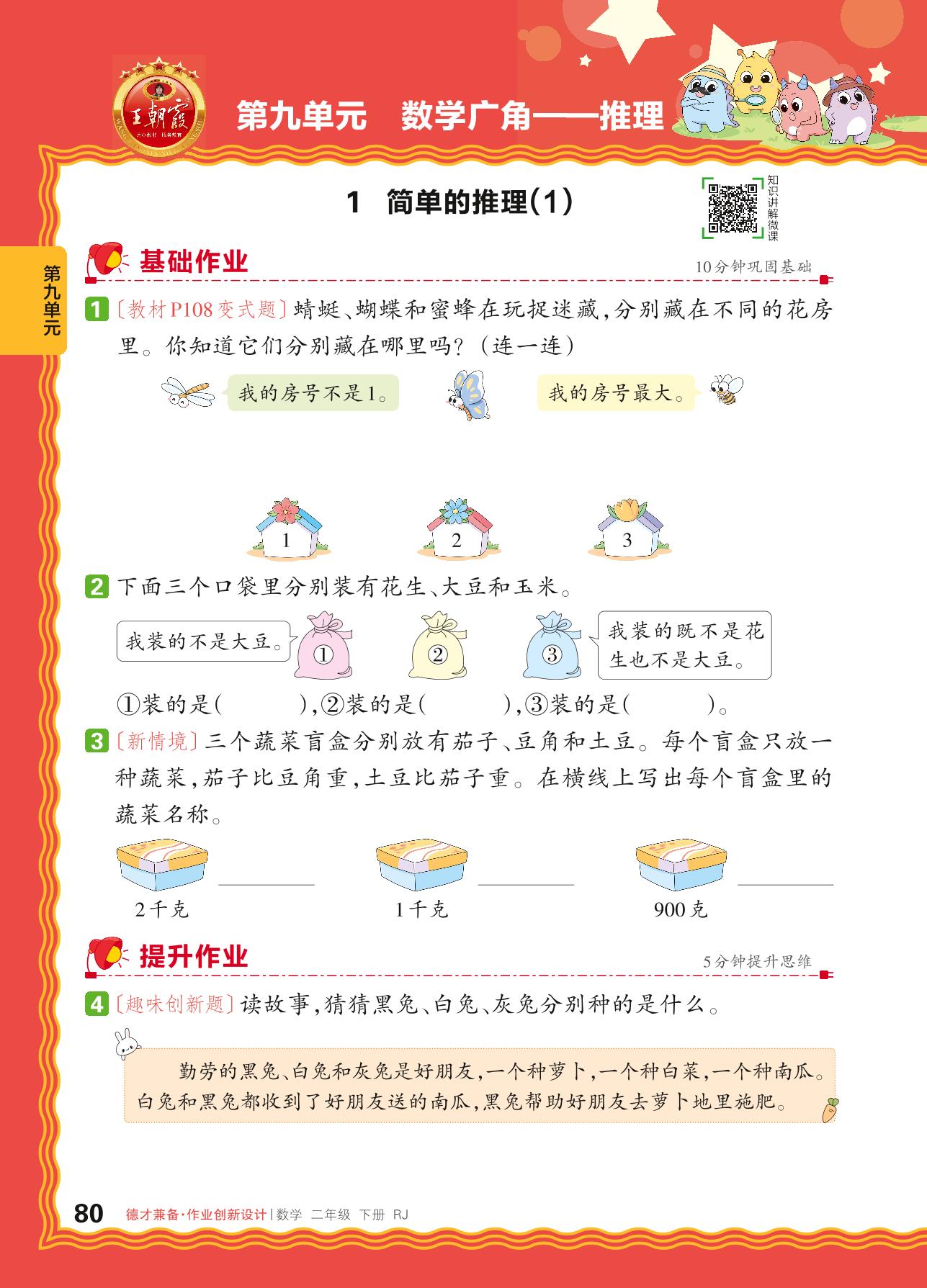 2024春下册二年级数学人教版 第九单元 数学广角——推理——1. 简单的推理(1)