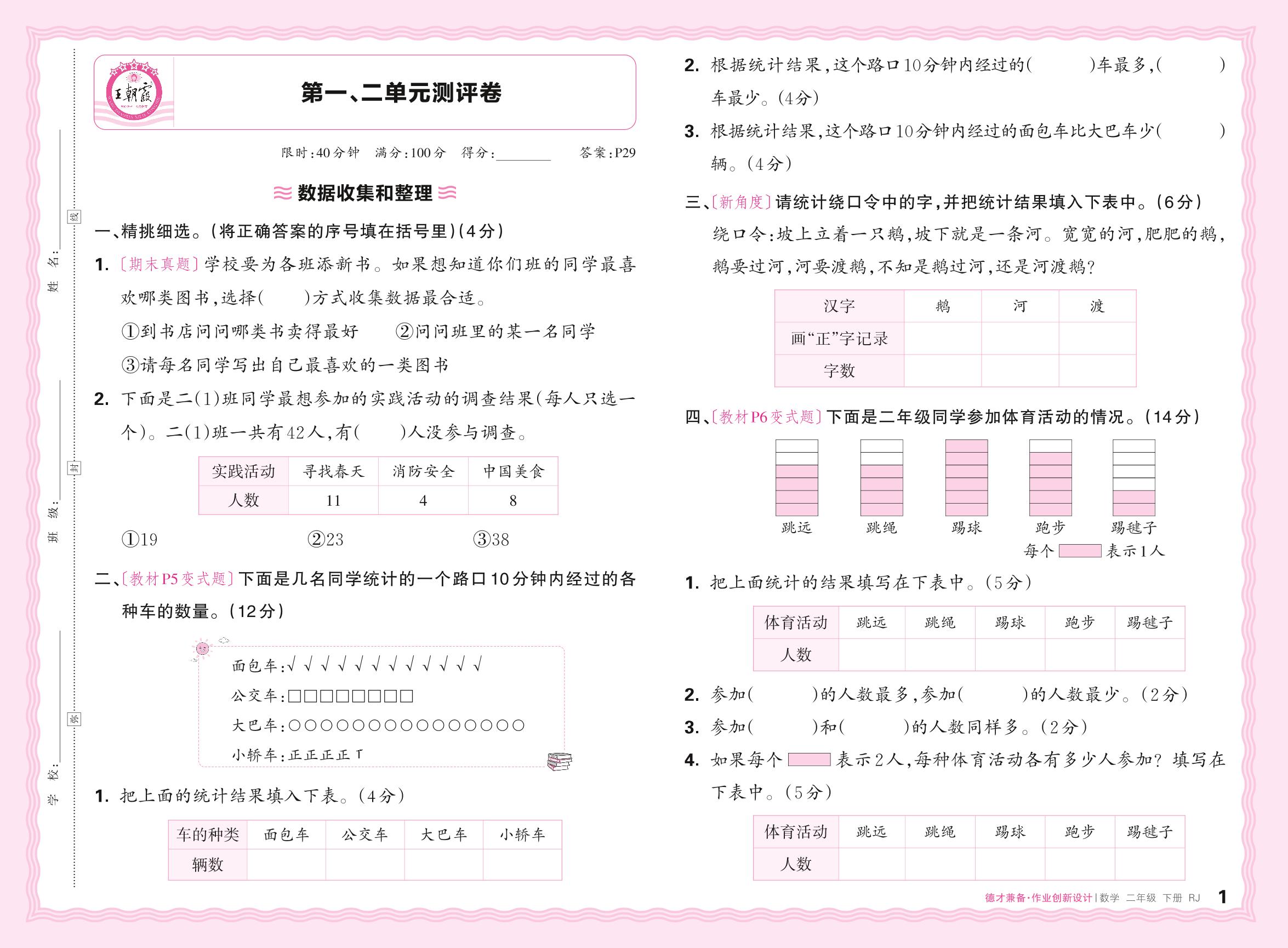 二年级数学人教版下册单元卷