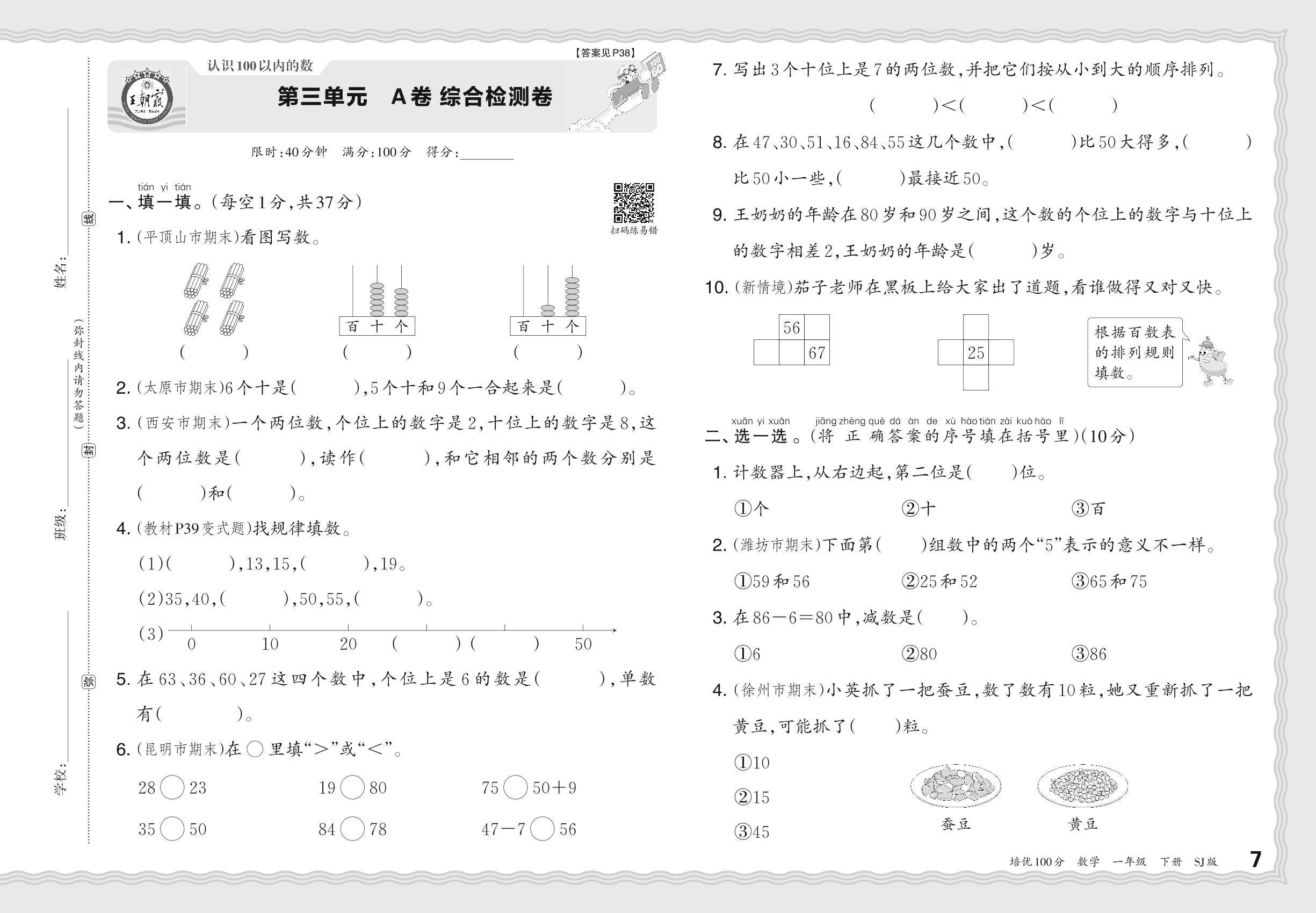 一年级数学苏教版下册单元卷