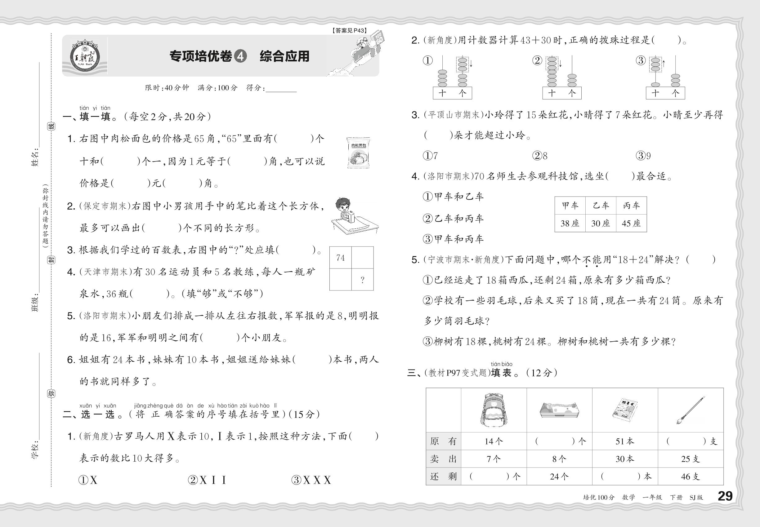 2024春下册一年级数学苏教版 期末专项卷PY版·综合应用【4】