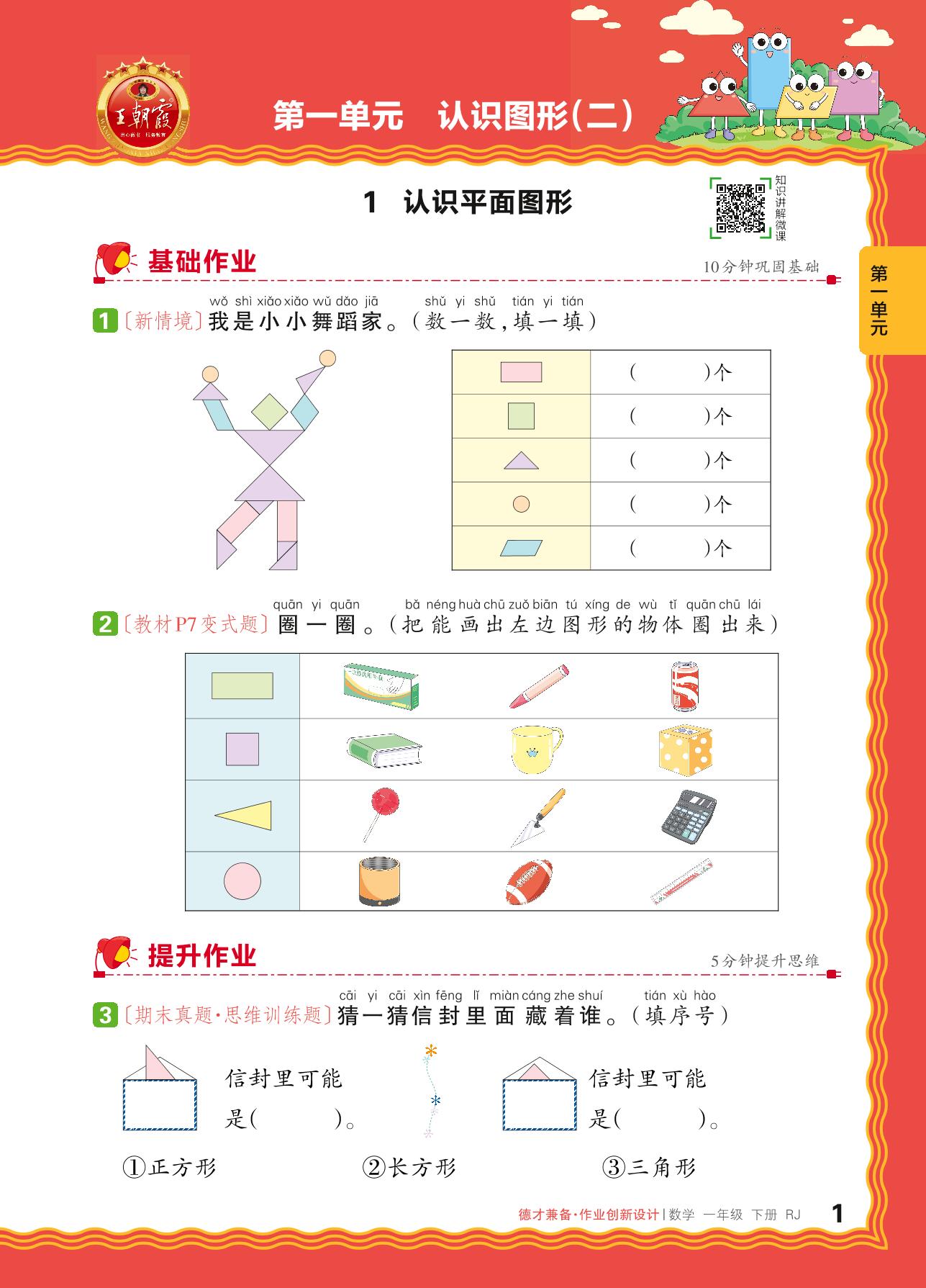 2024春下册一年级数学人教版 第一单元 认识图形(二)——1. 认识平面图形