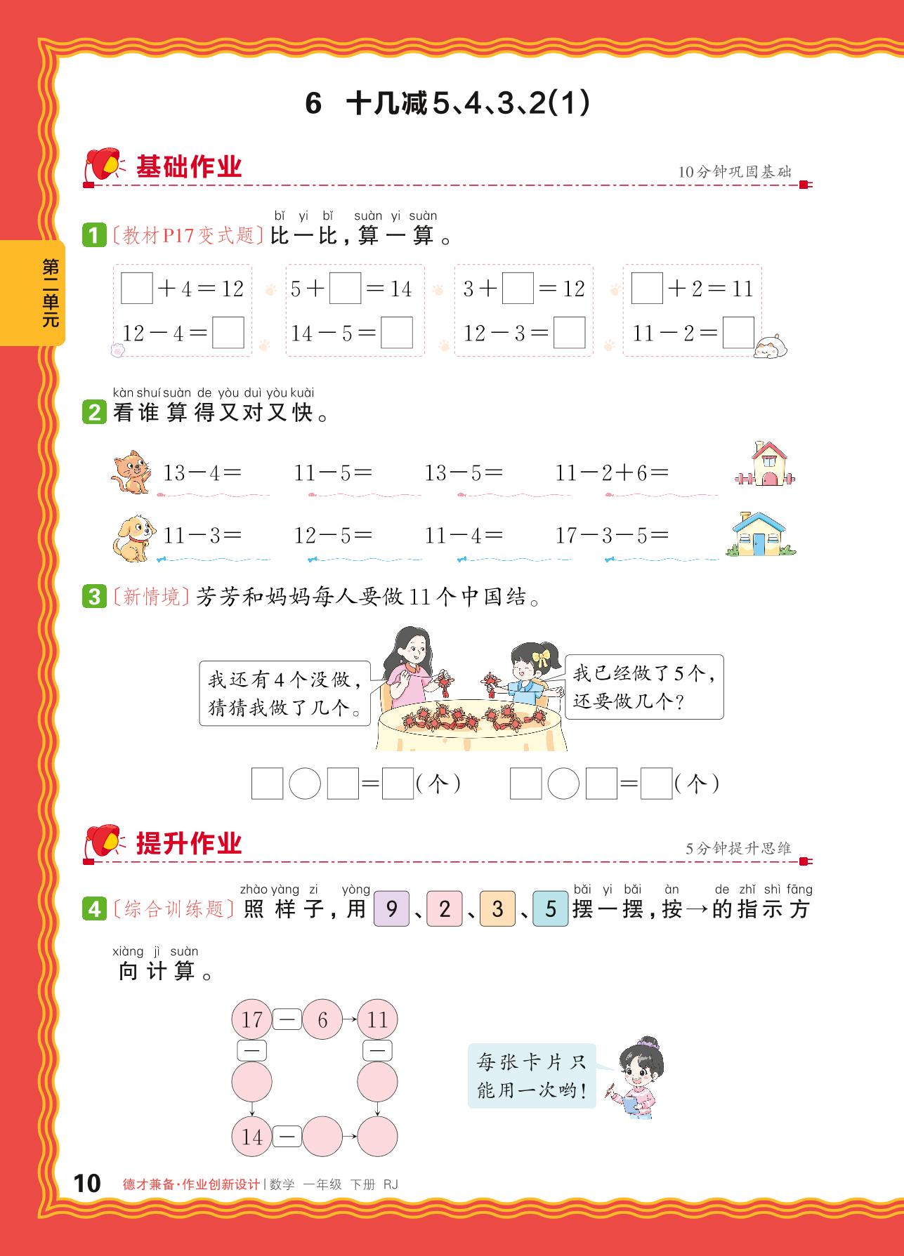2024春下册一年级数学人教版 第二单元 20以内的退位减法——6. 十几减5、4、3、2(1)