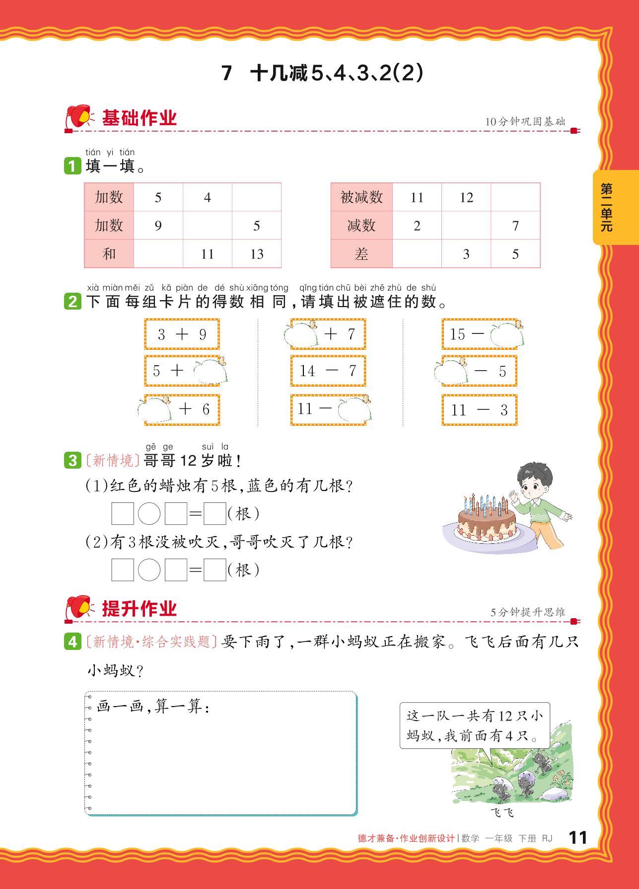 2024春下册一年级数学人教版 第二单元 20以内的退位减法——7. 十几减5、4、3、2(2)
