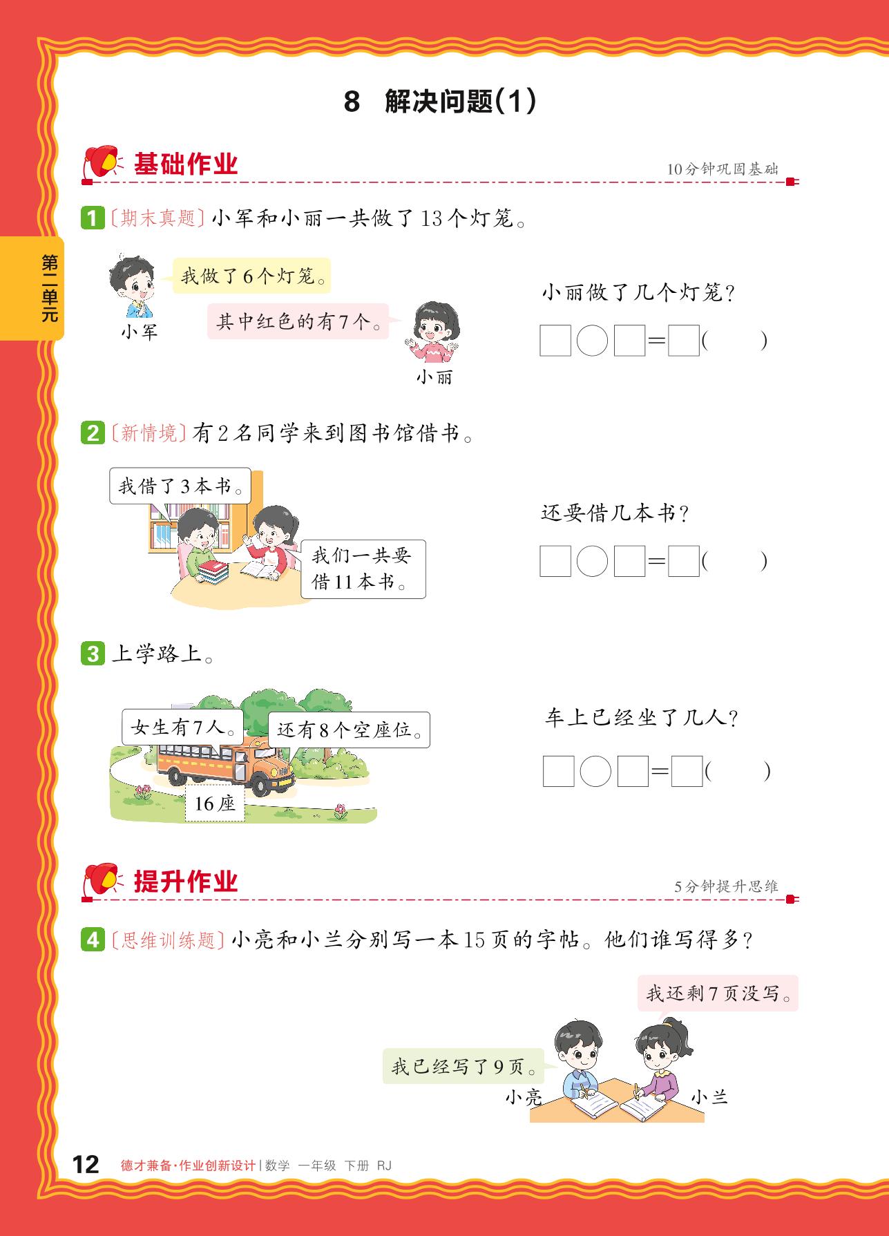 2024春下册一年级数学人教版 第二单元 20以内的退位减法——8. 解决问题(1)