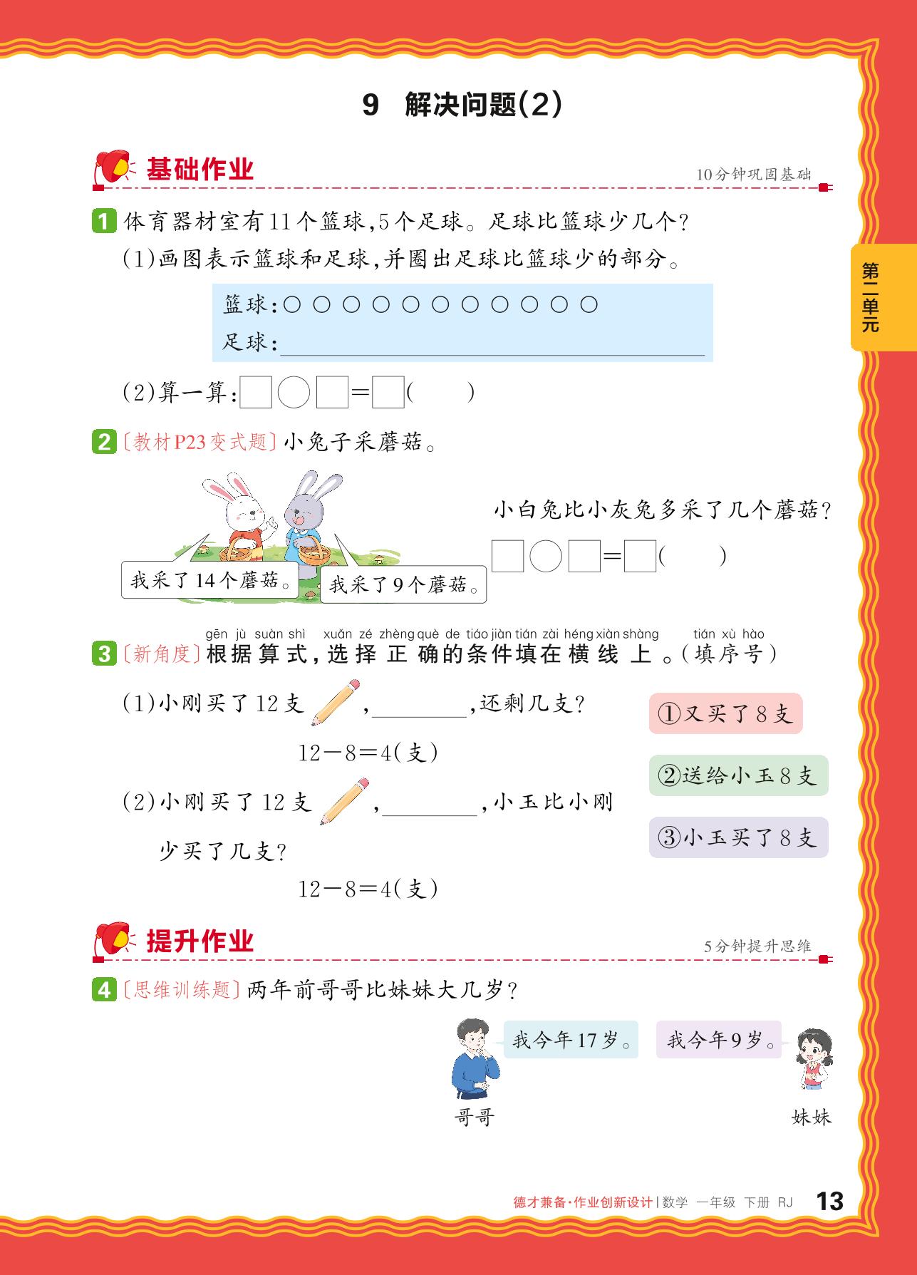 2024春下册一年级数学人教版 第二单元 20以内的退位减法——9. 解决问题(2)