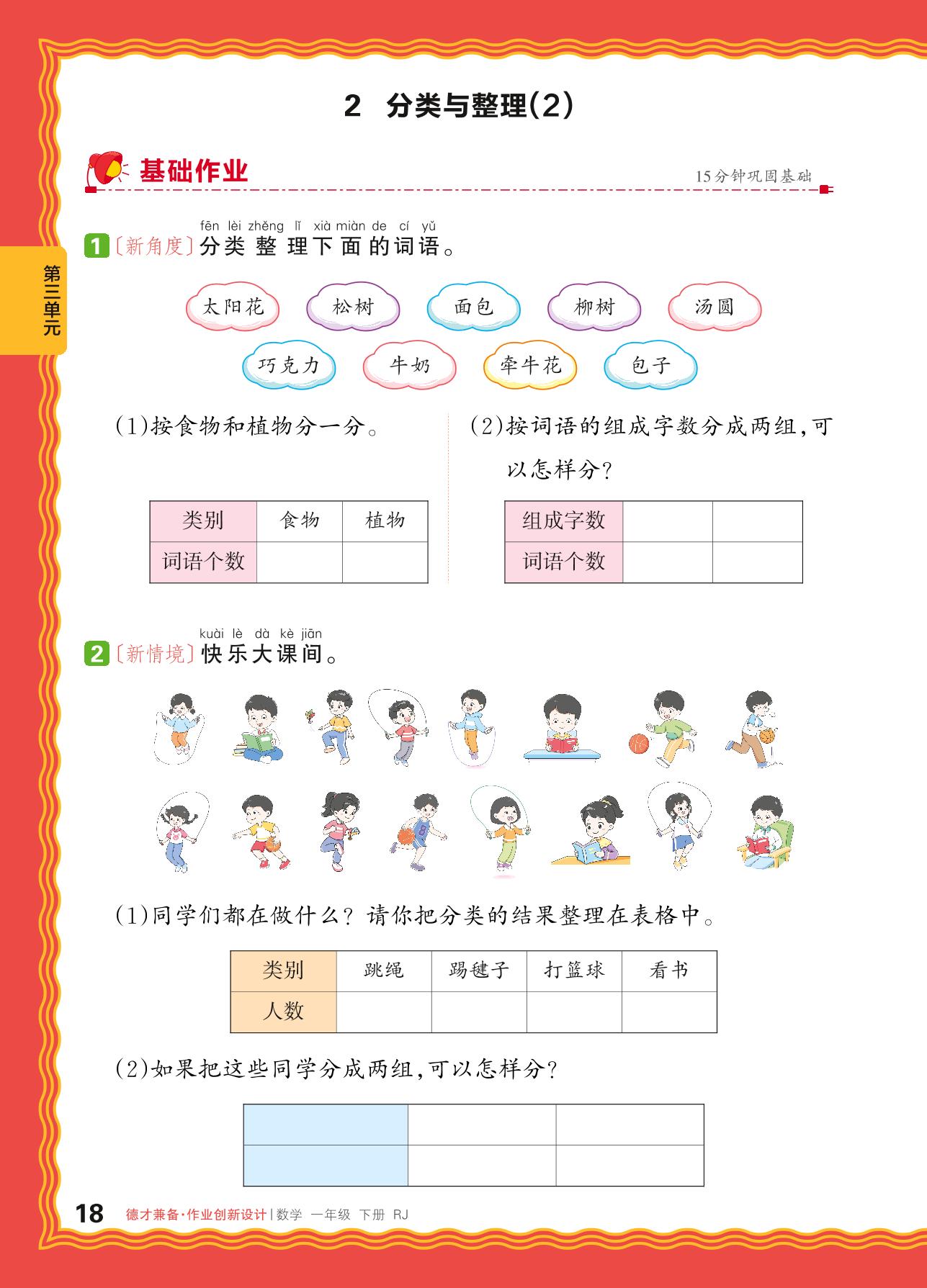 2024春下册一年级数学人教版 第三单元 分类与整理——2. 分类与整理(2)