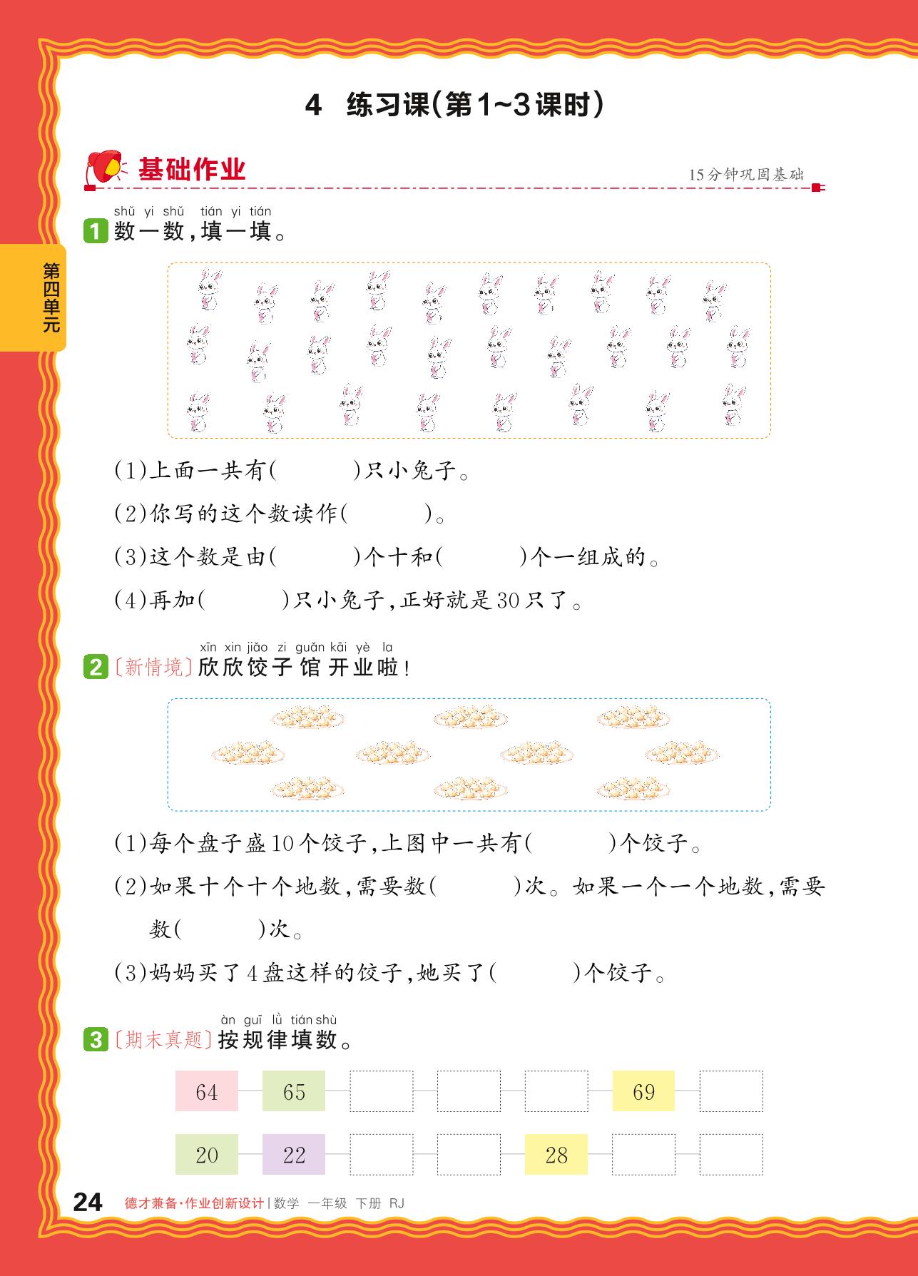2024春下册一年级数学人教版 第四单元 100以内数的认识——4. 数数、数的组成、读数 写数练习课