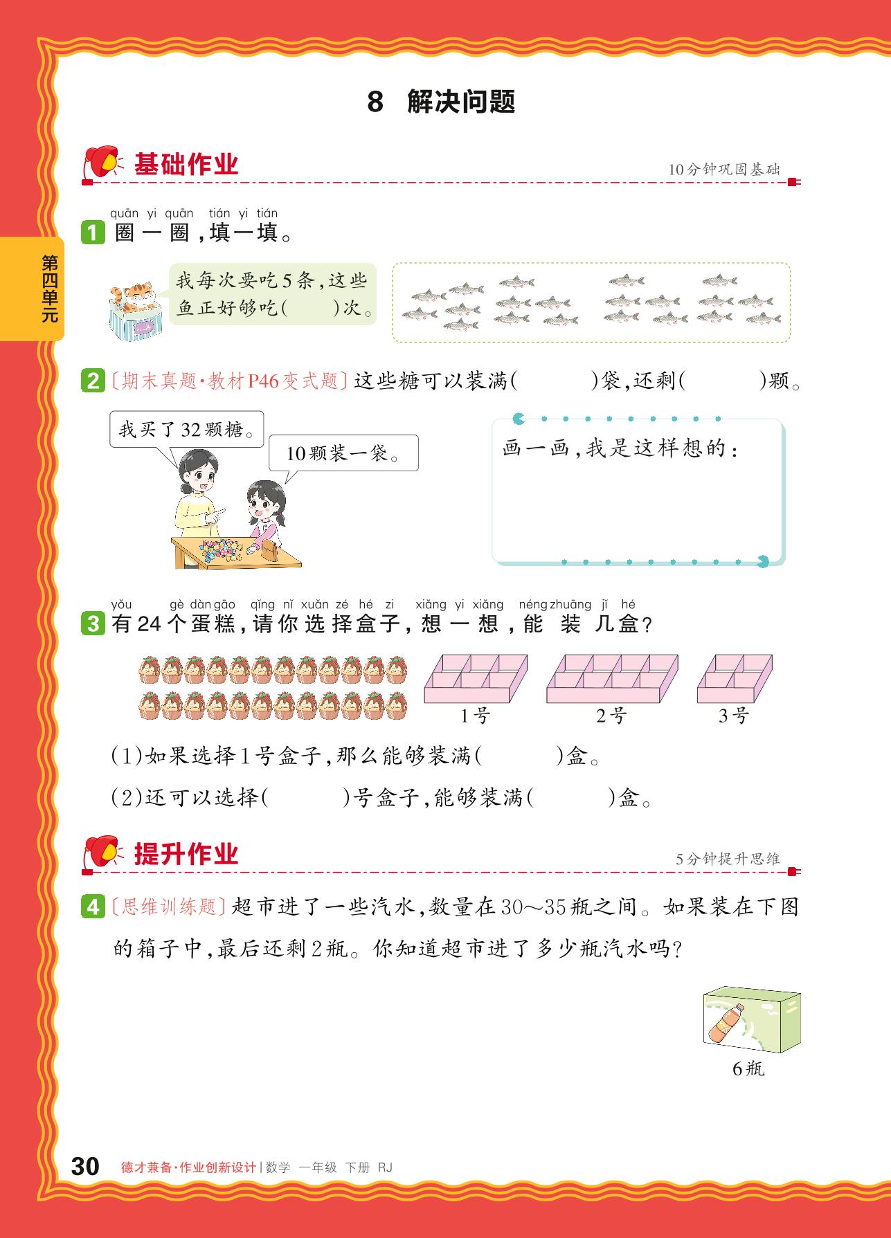 2024春下册一年级数学人教版 第四单元 100以内数的认识——8. 解决问题