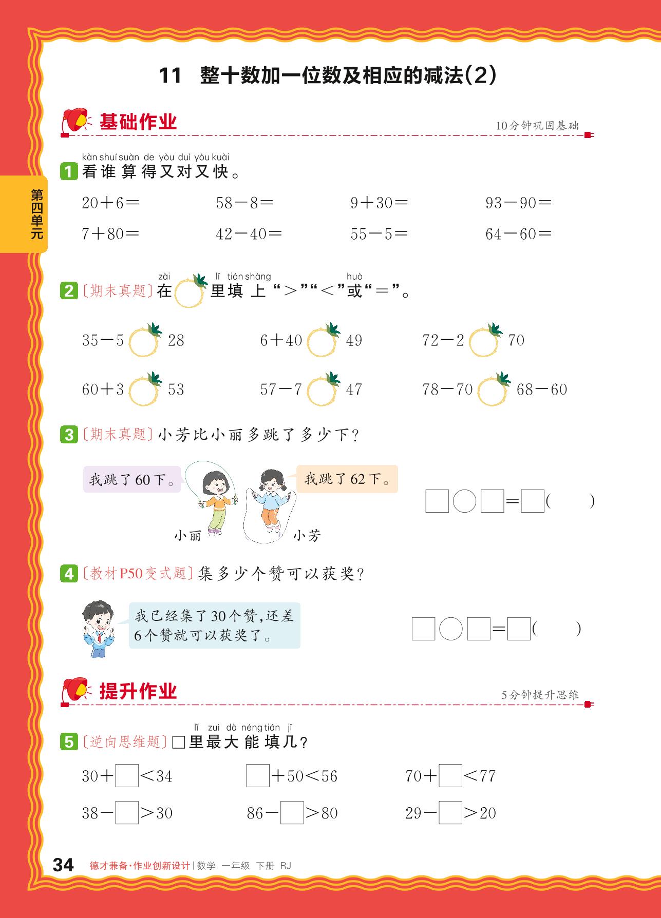 2024春下册一年级数学人教版 第四单元 100以内数的认识——11. 整十数加一位数及相应的减法(2)