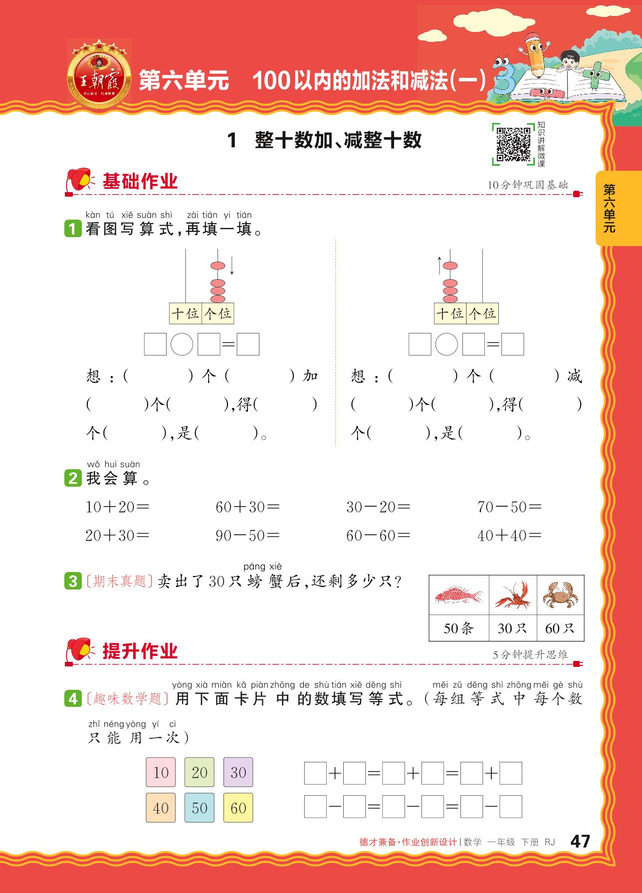 2024春下册一年级数学人教版 第六单元 100以内的加法和减法(一)——1. 整十数加、减整十数