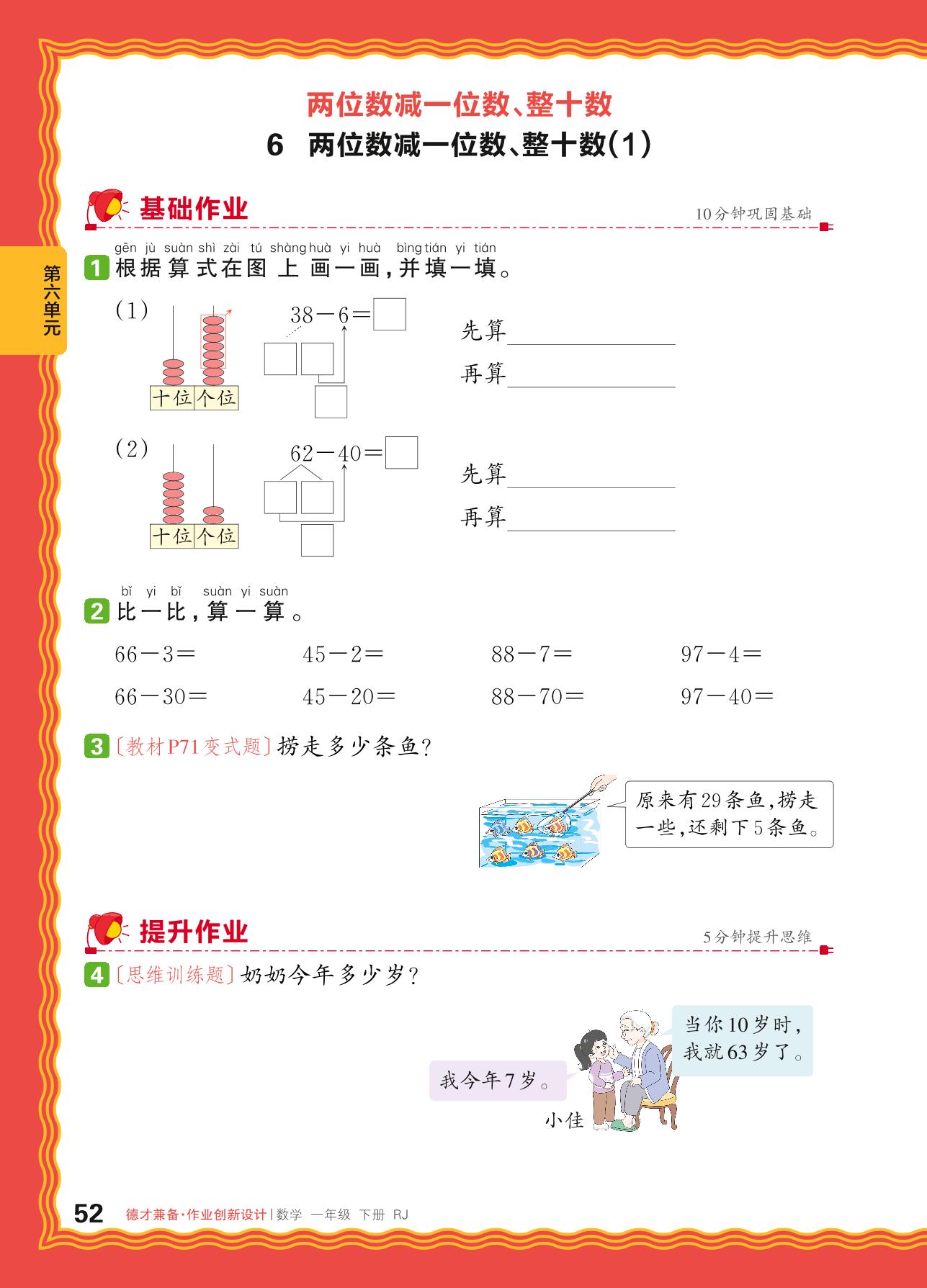 2024春下册一年级数学人教版 第六单元 100以内的加法和减法(一)——6. 两位数减一位数、整十数(1)
