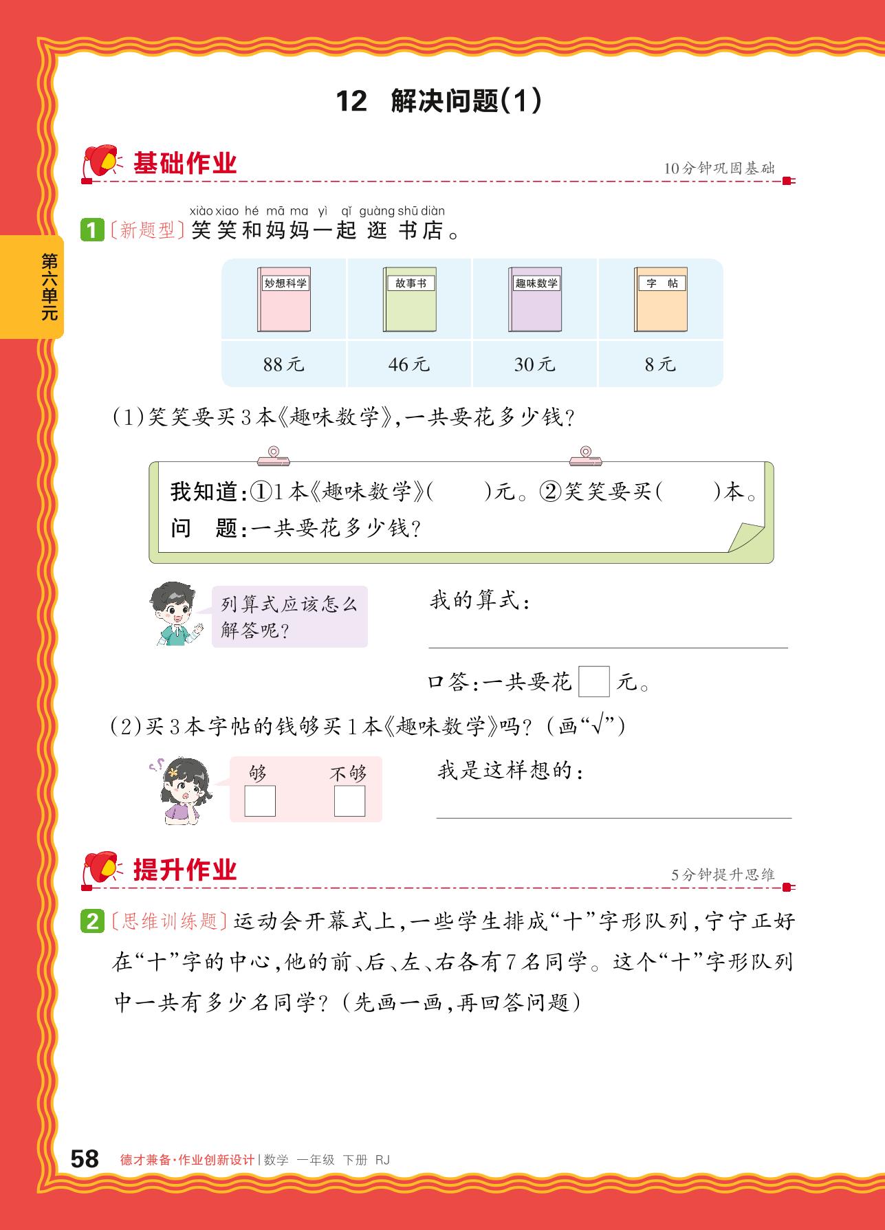 2024春下册一年级数学人教版 第六单元 100以内的加法和减法(一)——12. 解决问题(1)