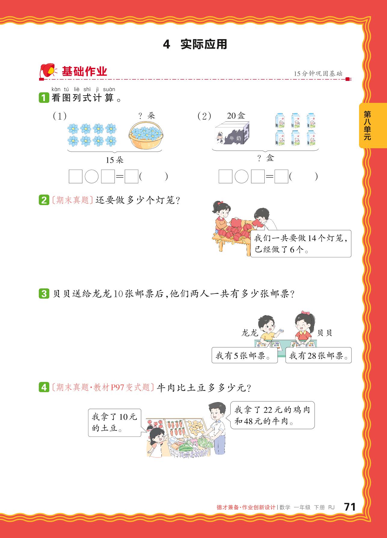 2024春下册一年级数学人教版 第八单元 总复习——4. 解决问题