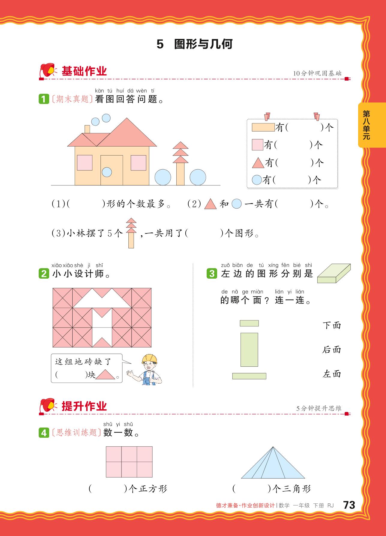 2024春下册一年级数学人教版 第八单元 总复习——5. 图形与几何