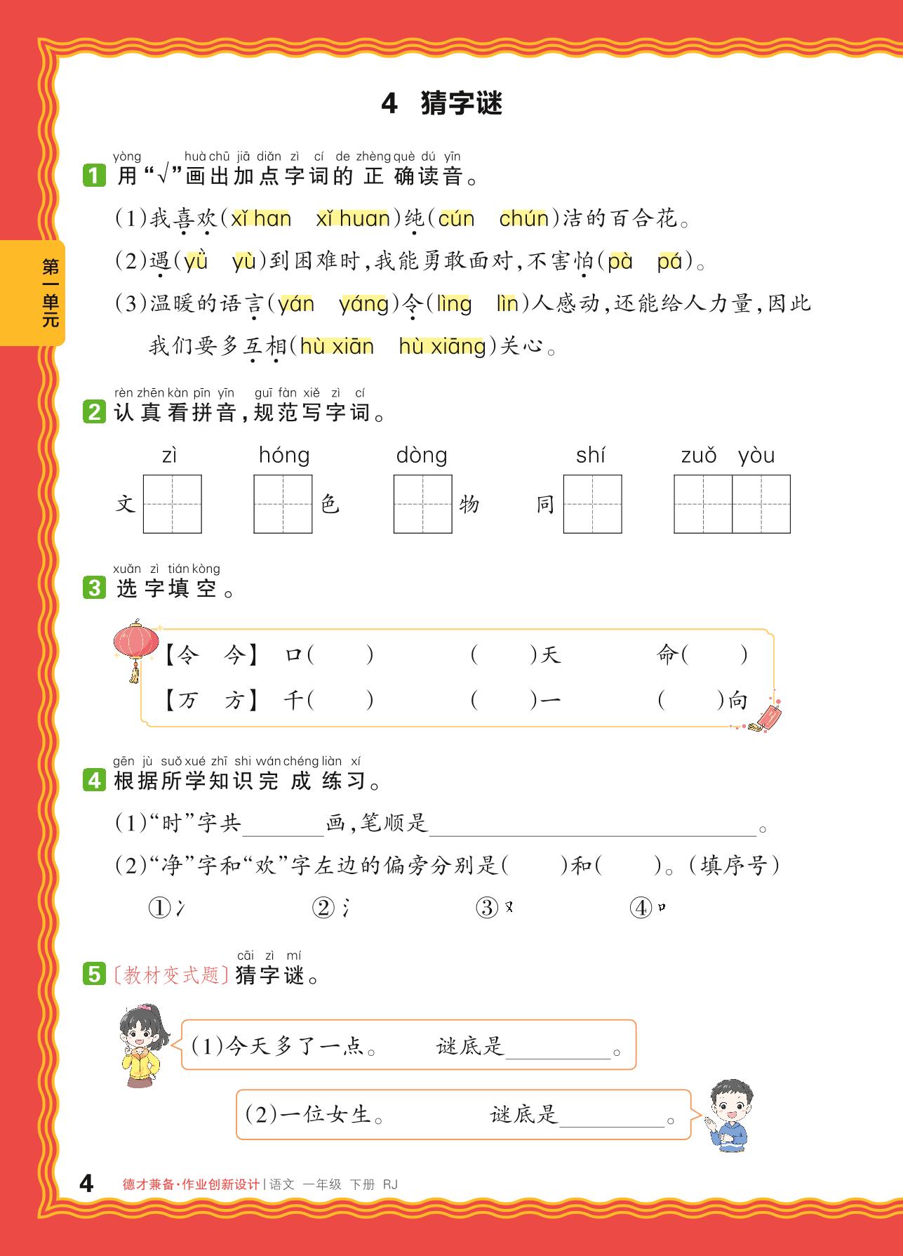 2024春下册一年级语文人教版 第一单元 识字——4. 猜字谜