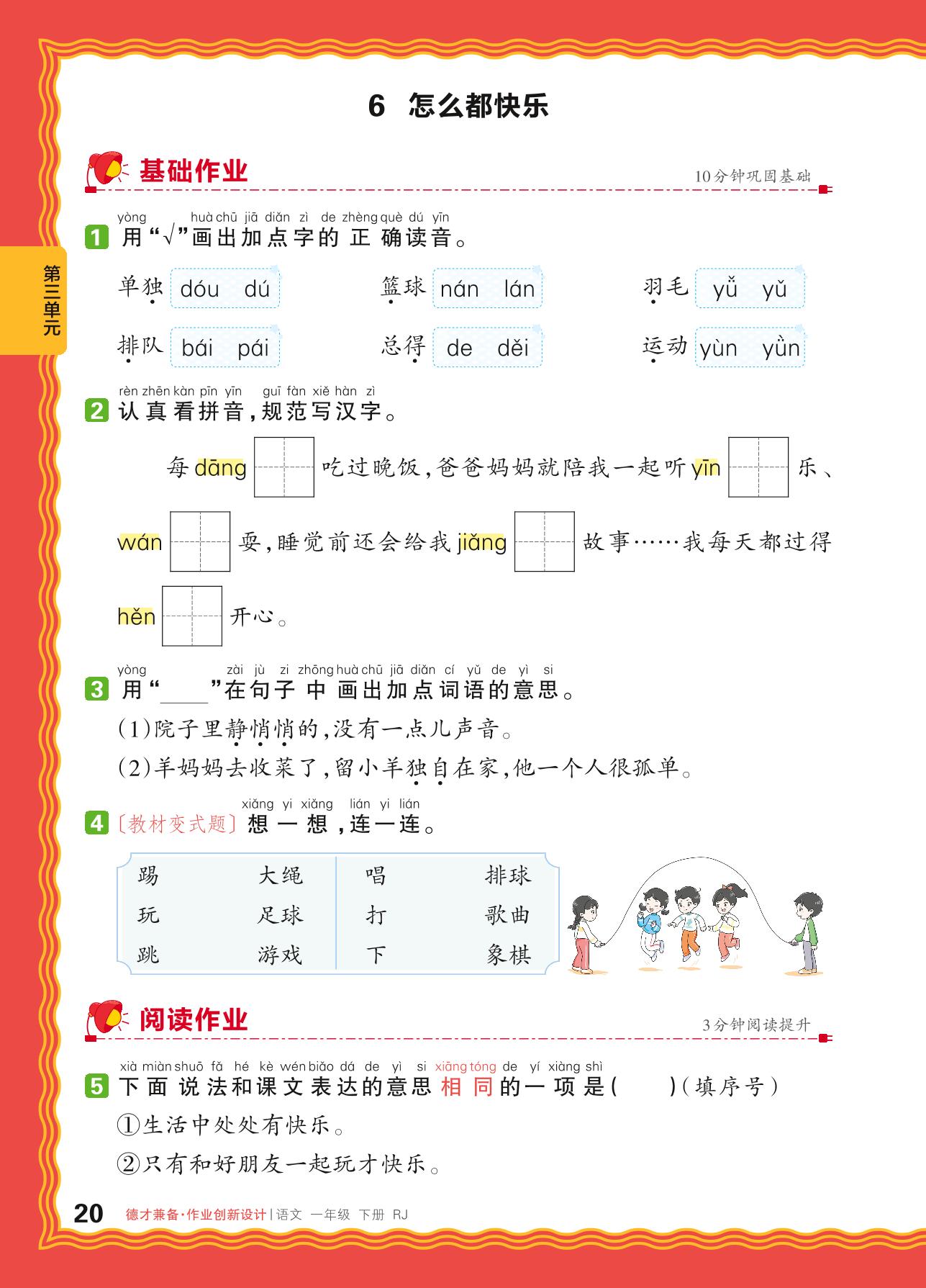 2024春下册一年级语文人教版 第三单元 伙伴——6. 怎么都快乐