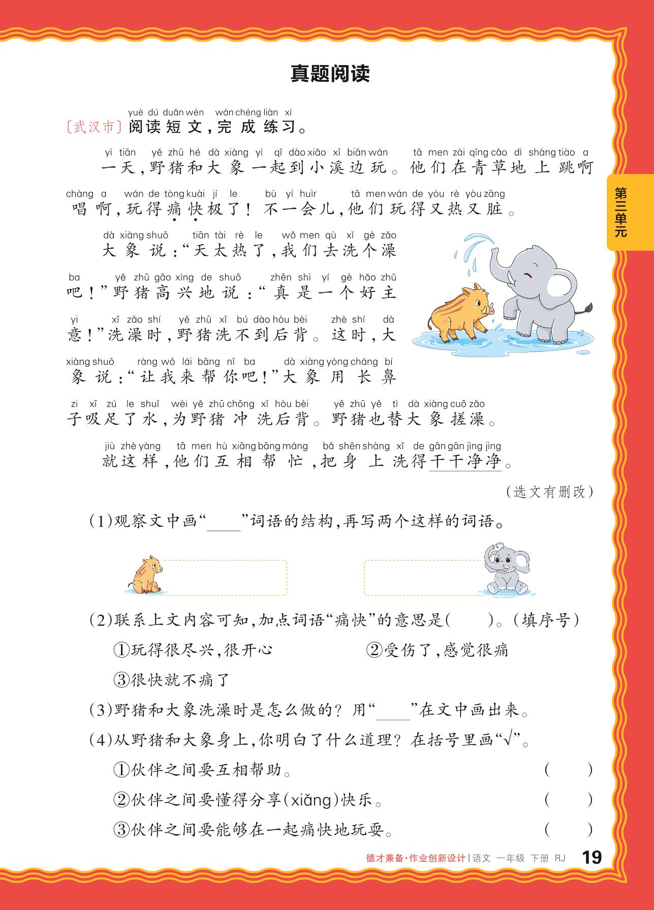 2024春下册一年级语文人教版 第三单元 伙伴——真题阅读