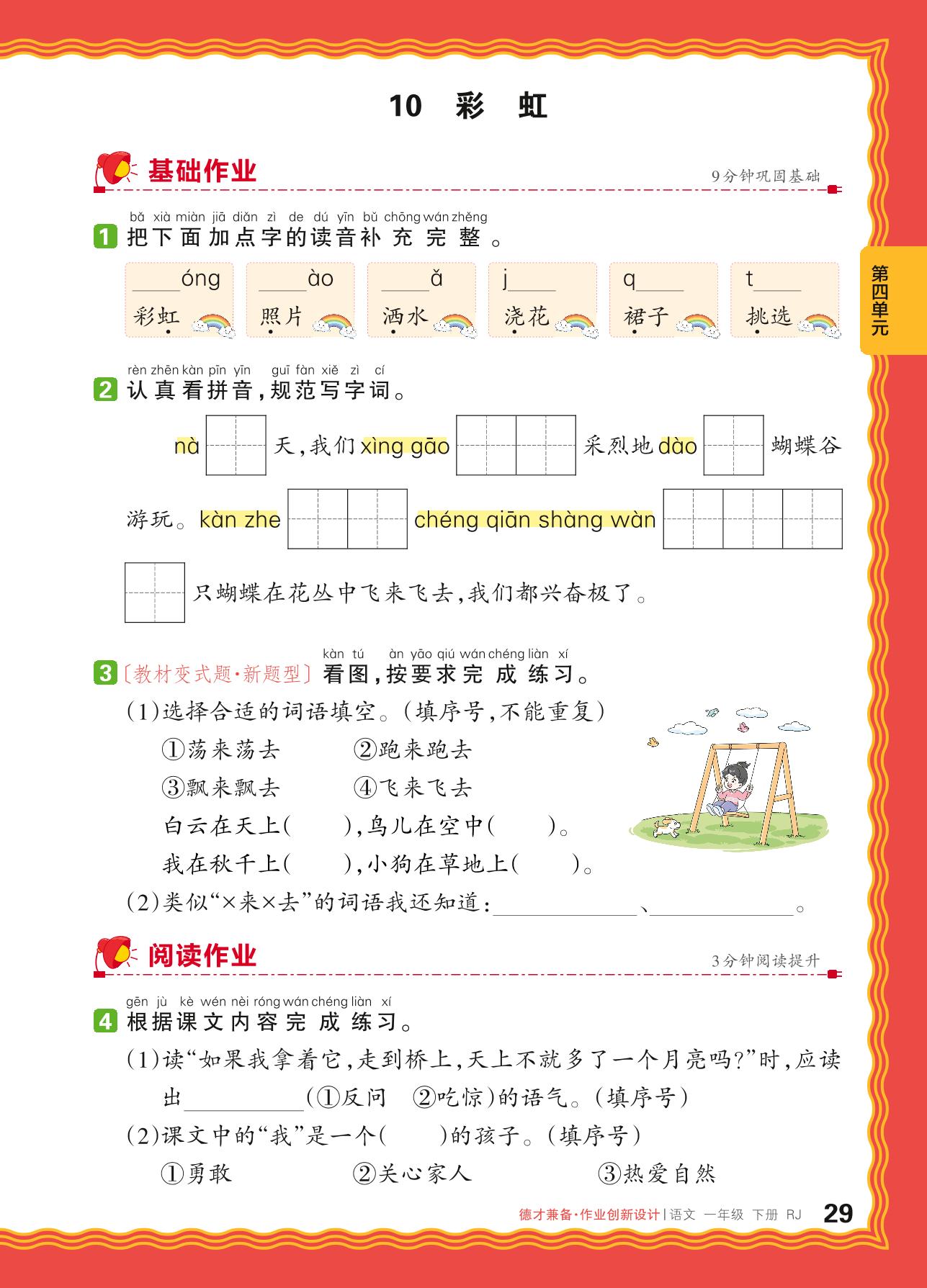 2024春下册一年级语文人教版 第四单元 家人——10. 彩虹