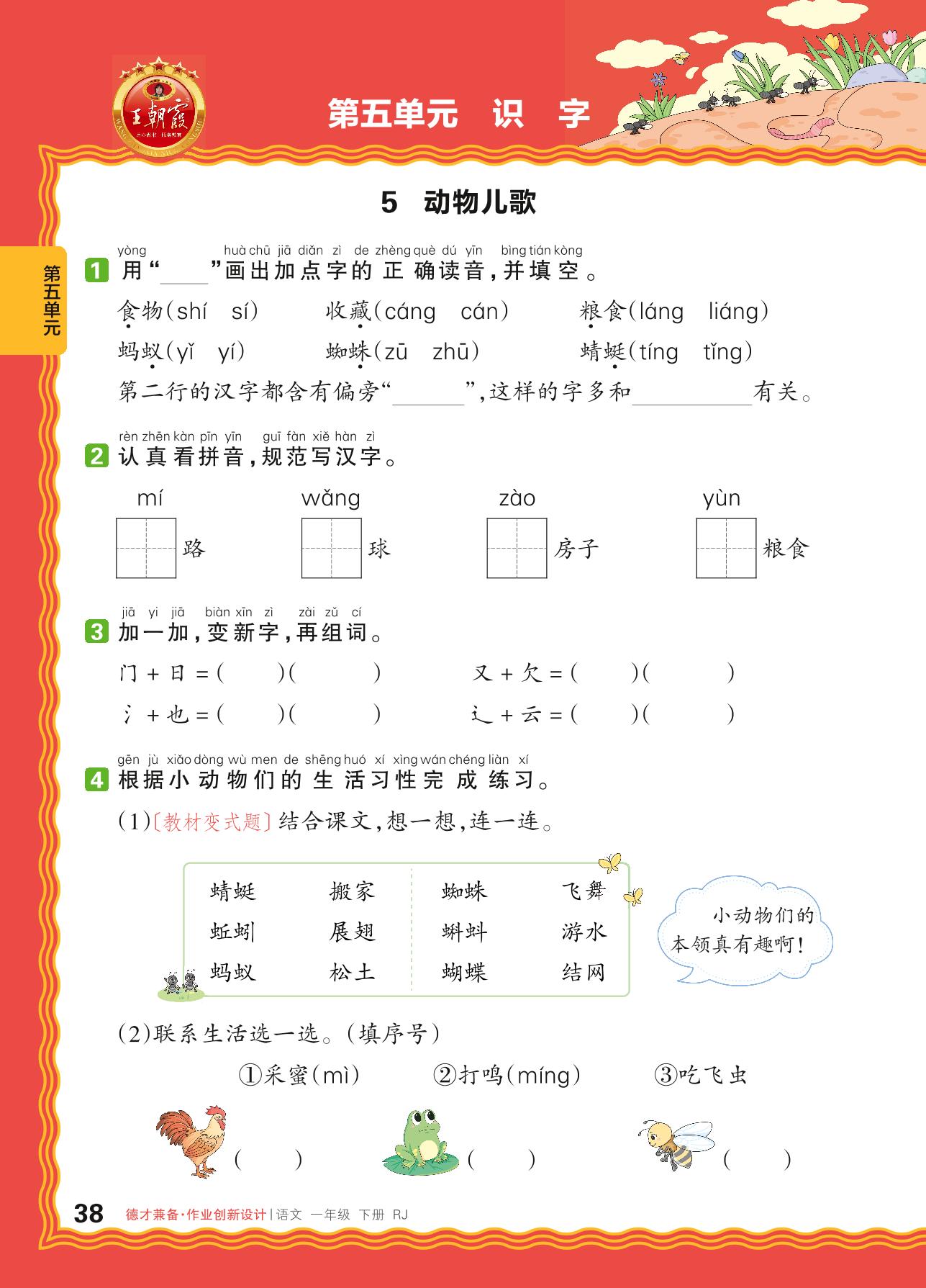 2024春下册一年级语文人教版 第五单元 识字——5. 动物儿歌