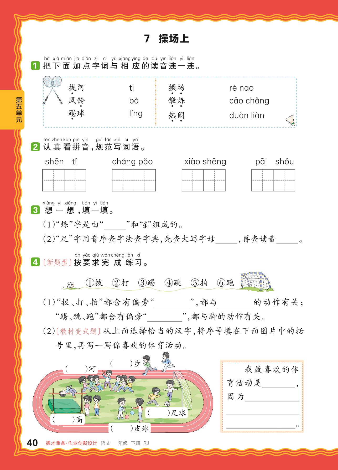 2024春下册一年级语文人教版 第五单元 识字——7. 操场上