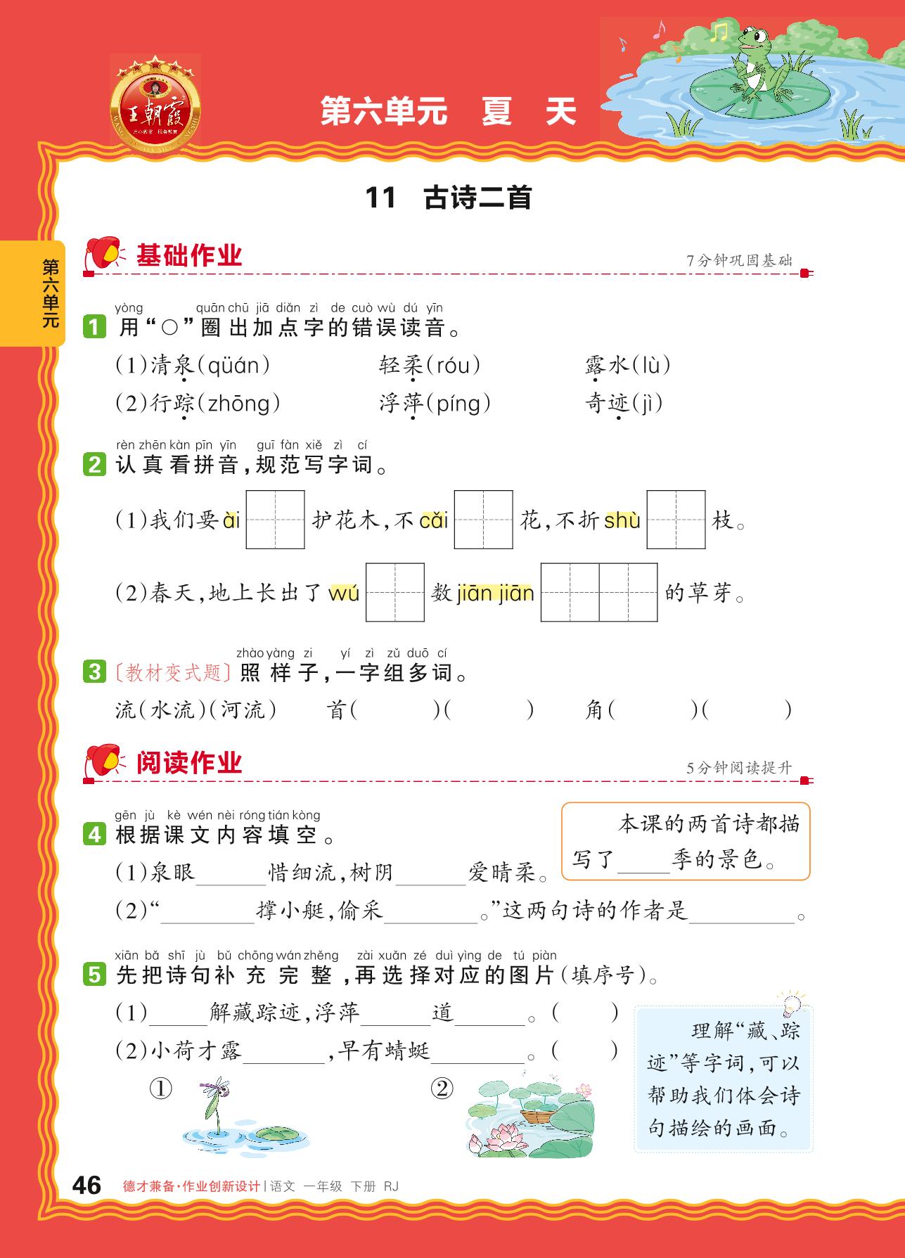 2024春下册一年级语文人教版 第六单元 夏天——11. 古诗二首
