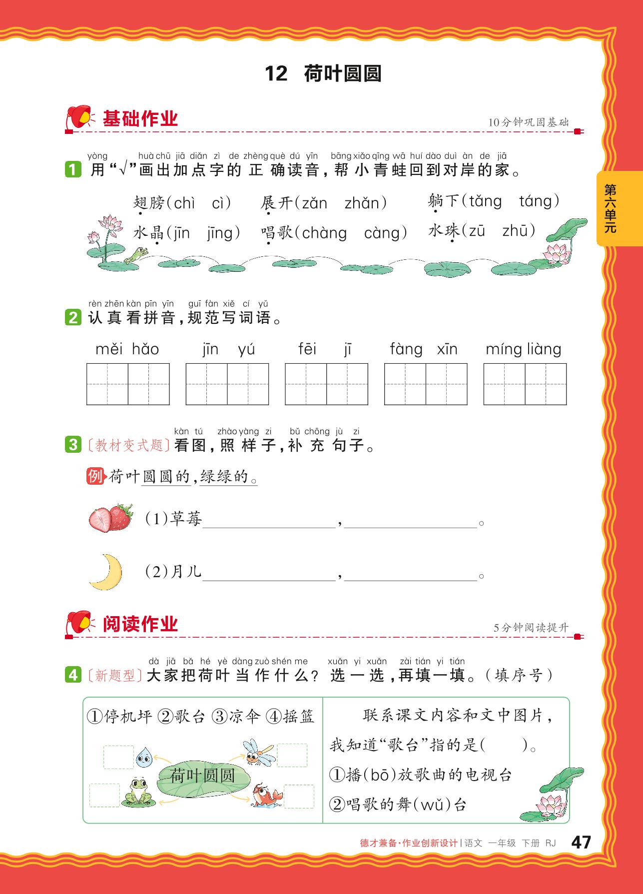 2024春下册一年级语文人教版 第六单元 夏天——12. 荷叶圆圆