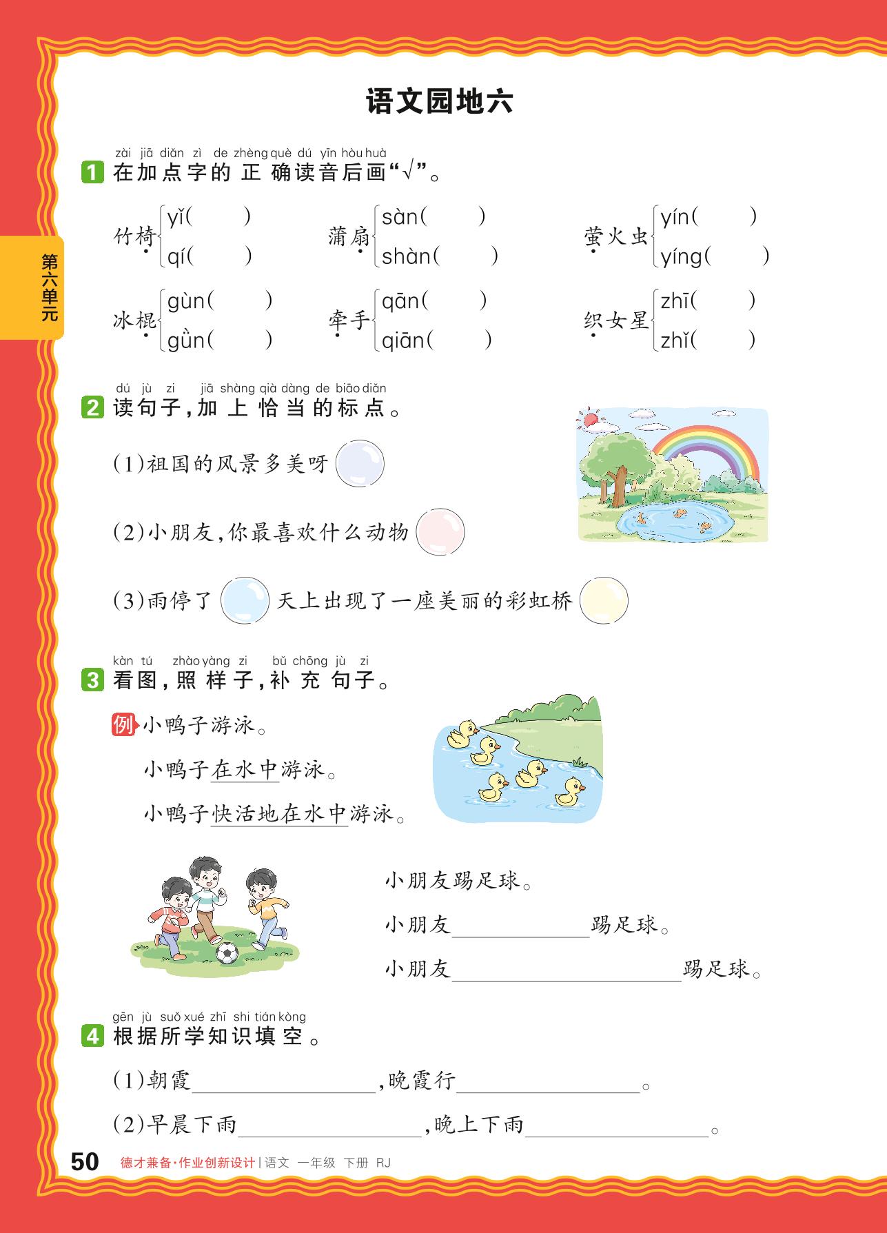 2024春下册一年级语文人教版 第六单元 夏天——语文园地六