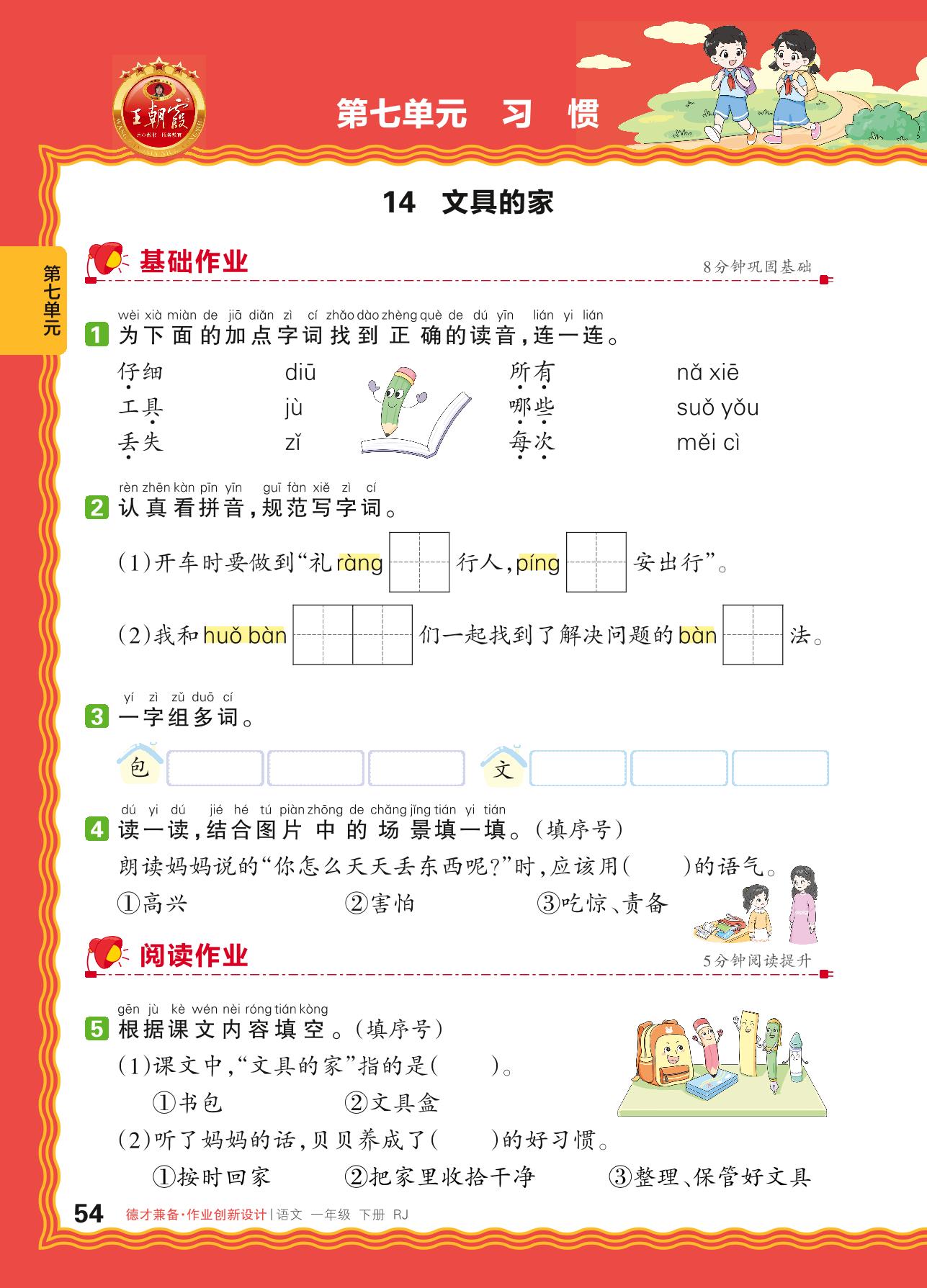 2024春下册一年级语文人教版 第七单元 习惯——14. 文具的家