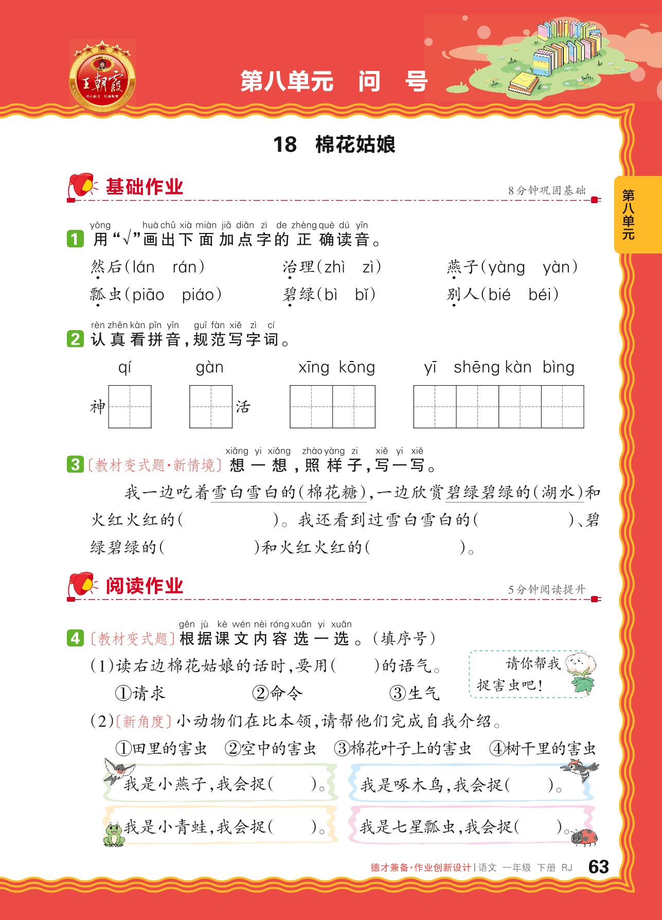 2024春下册一年级语文人教版 第八单元 问号——18. 棉花姑娘