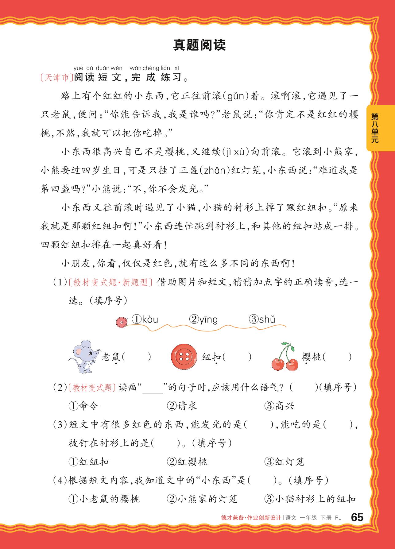 2024春下册一年级语文人教版 第八单元 问号——真题阅读