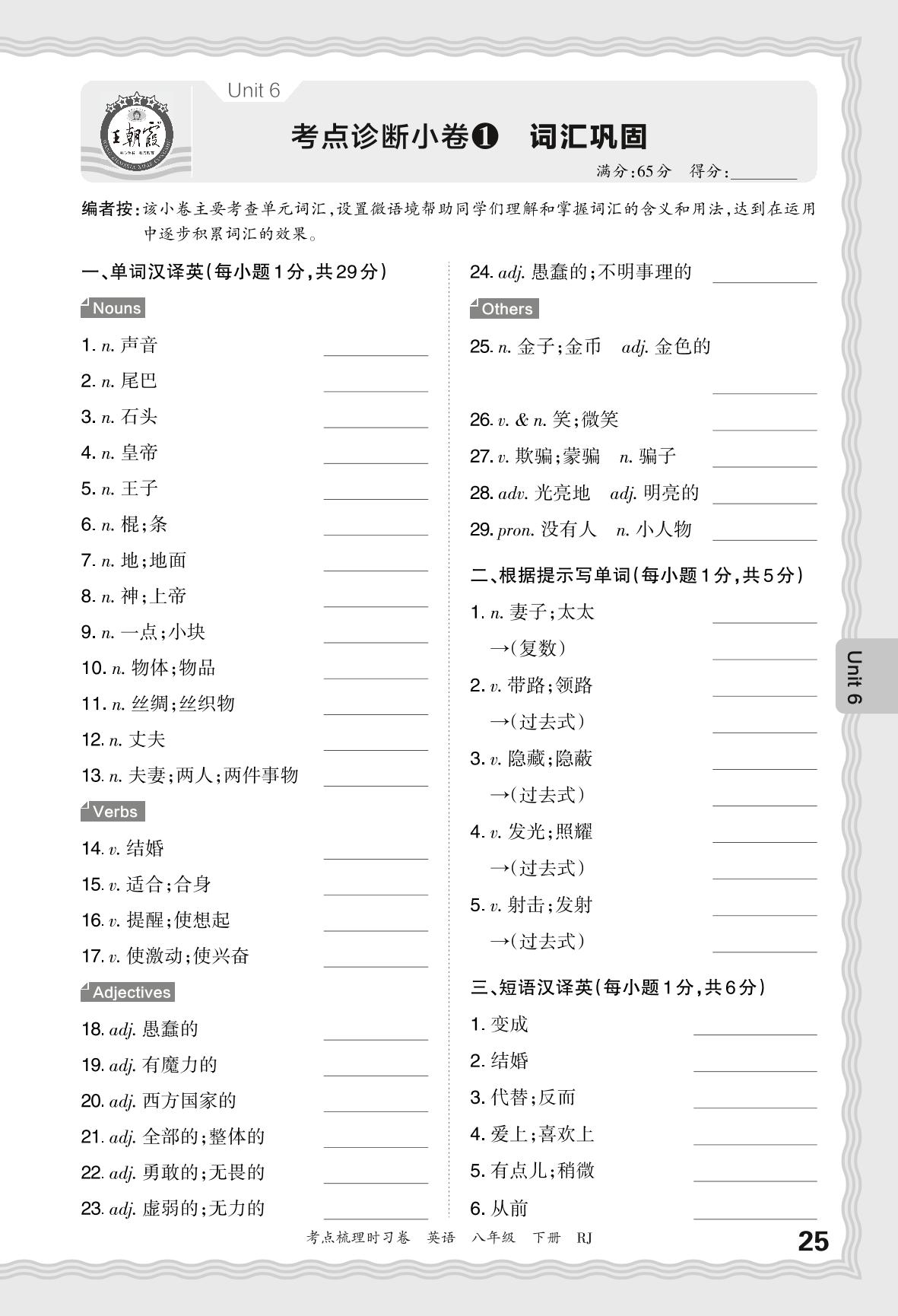 2024春下册八年级英语人教版 Unit 6 考点诊断小卷1 词汇巩固