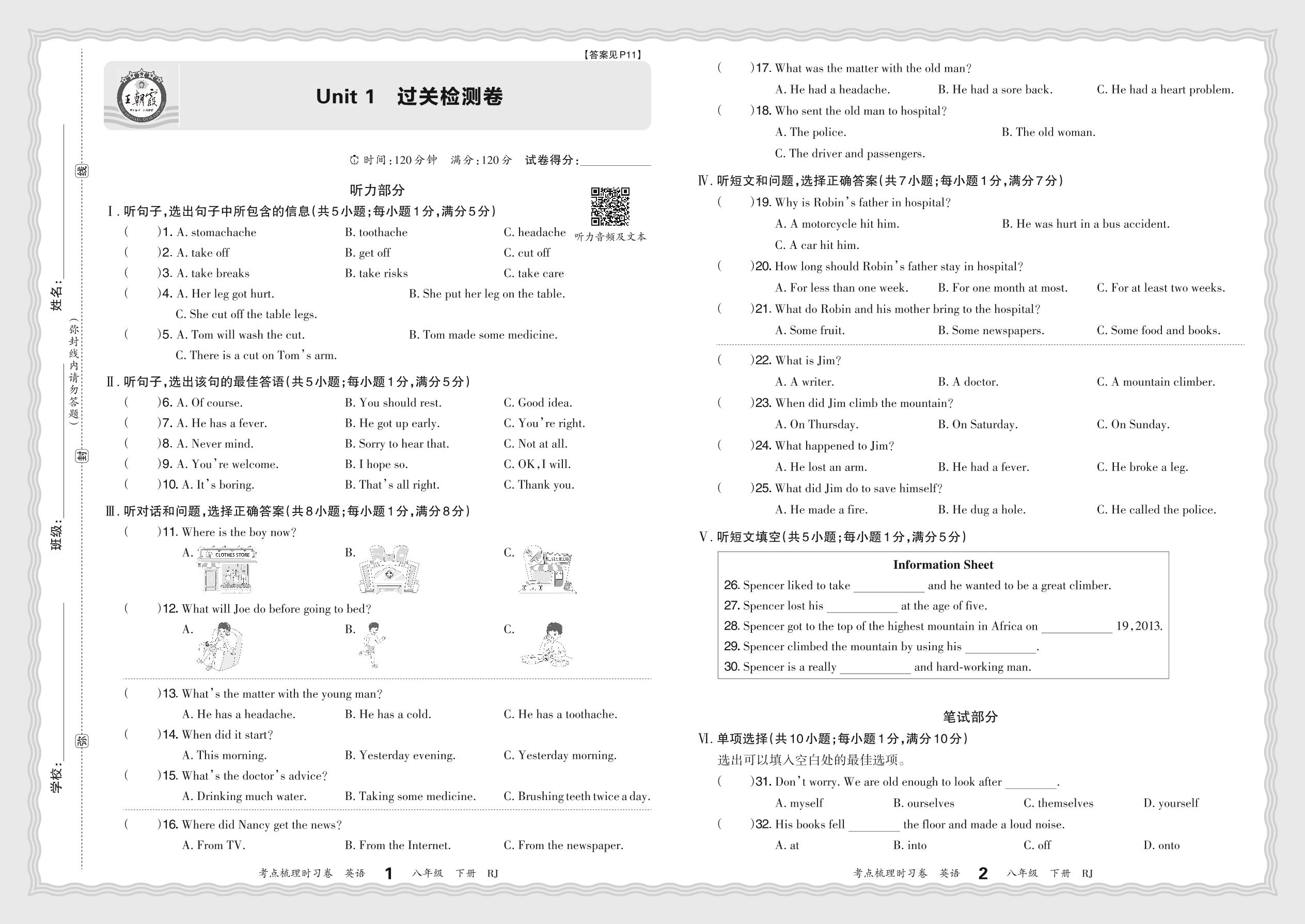 八年级英语人教版下册单元卷