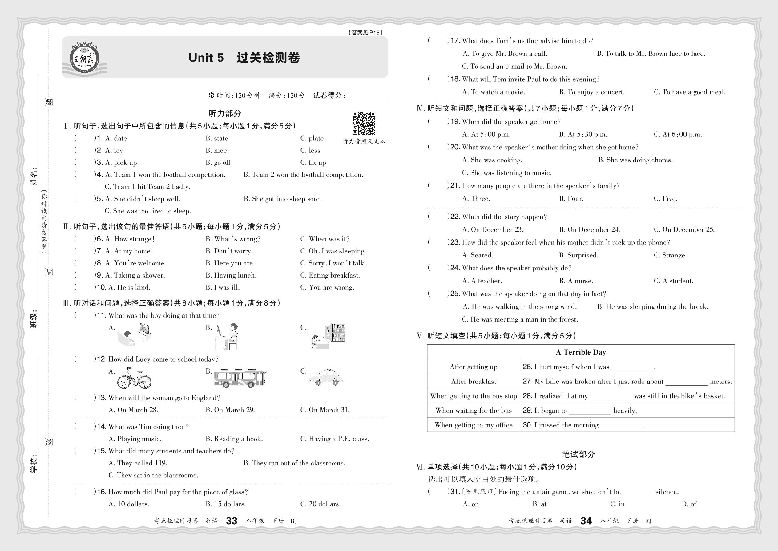 2024春下册八年级英语人教版 Unit 5 过关检测卷
