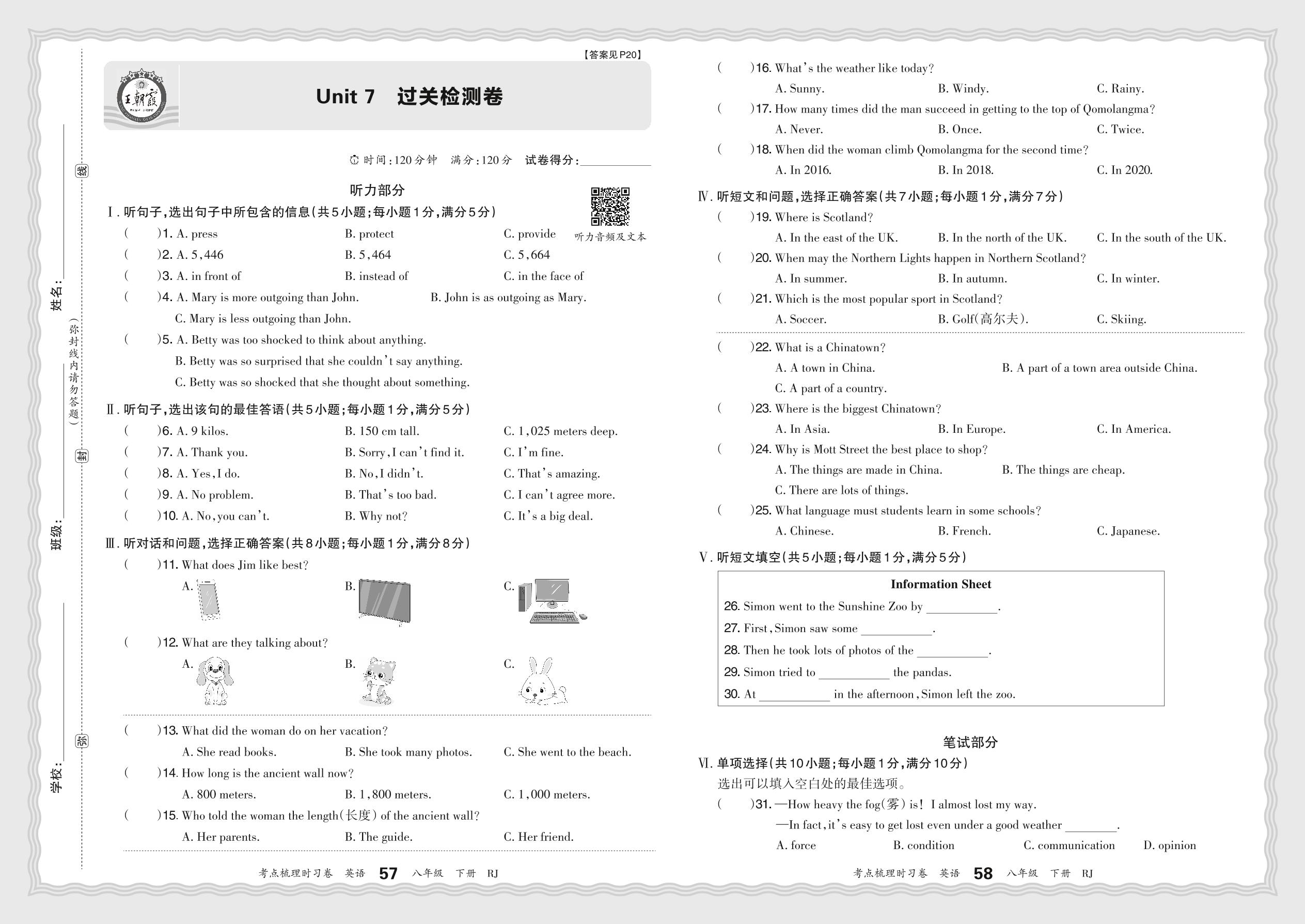 八年级英语人教版下册单元卷