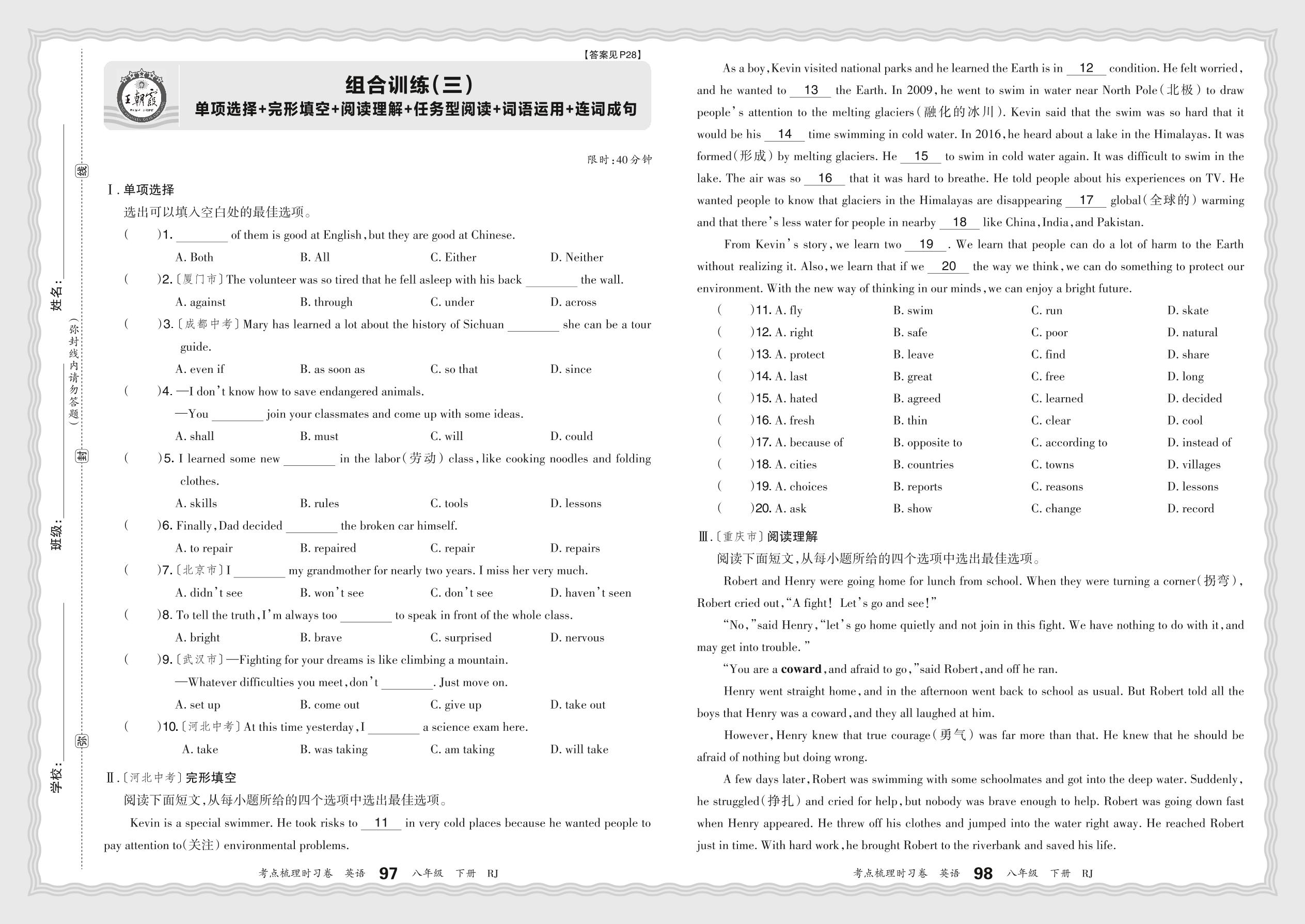 2024春下册八年级英语人教版 组合训练(三)
