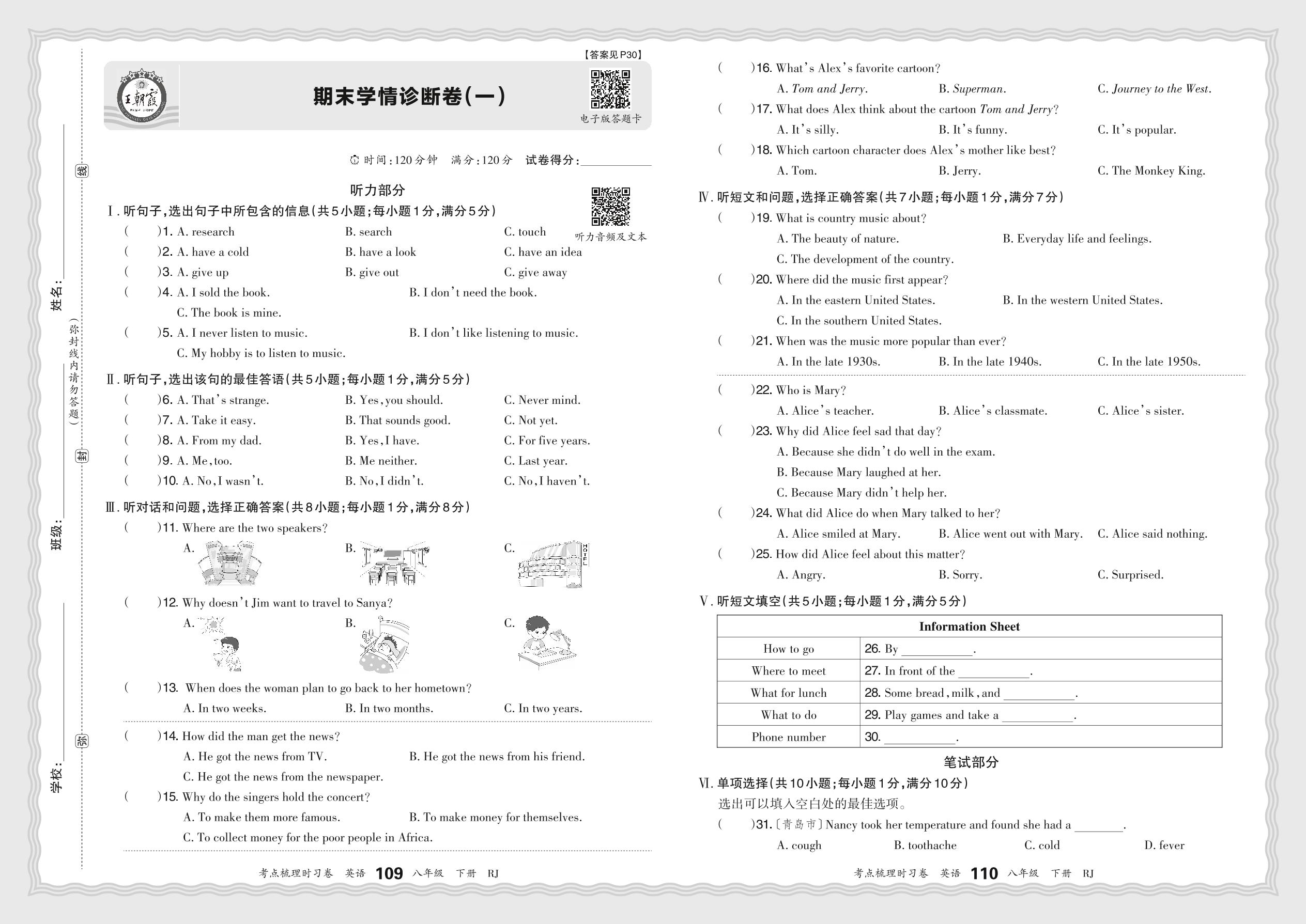 八年级英语人教版下册期末卷