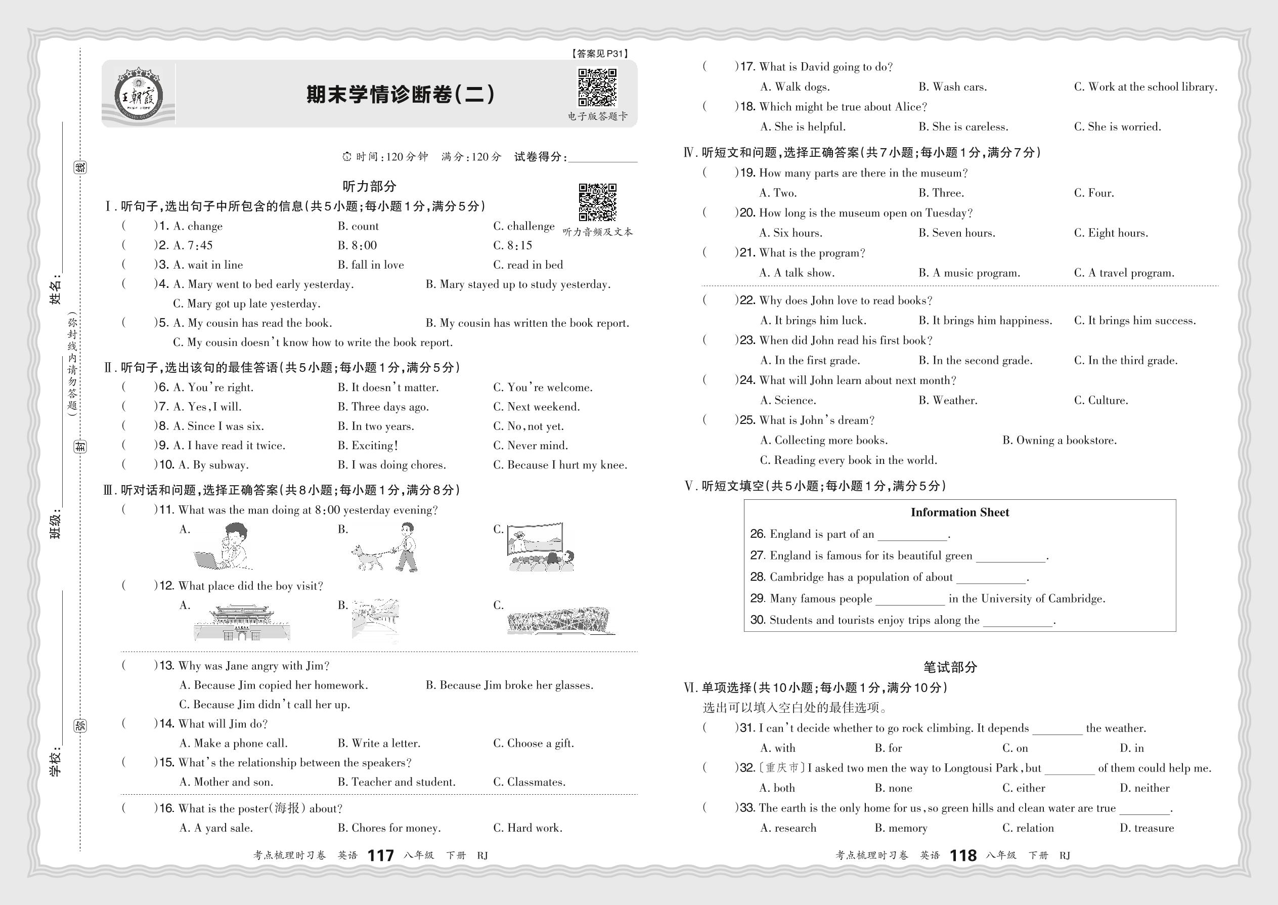 2024春下册八年级英语人教版 期末学情诊断卷(二)