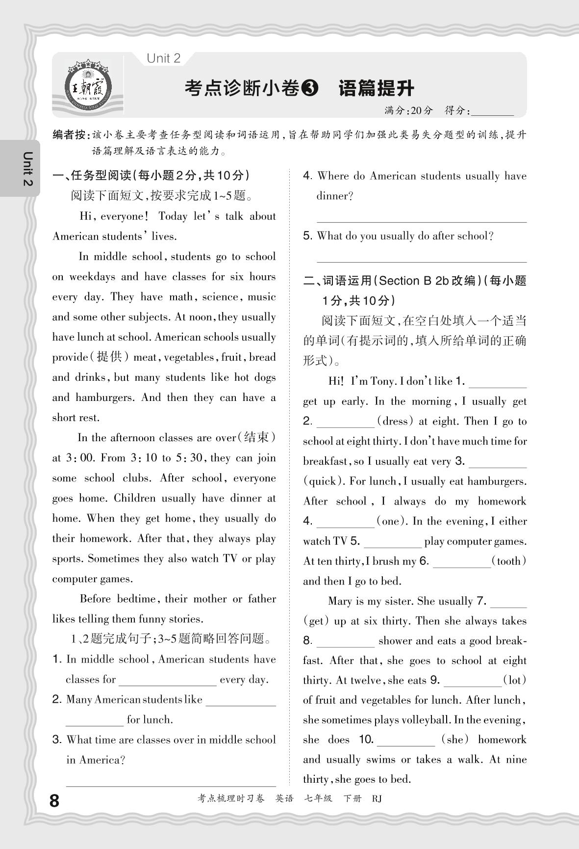 2024春下册七年级英语人教版 Unit 2 考点诊断小卷3 语篇提升