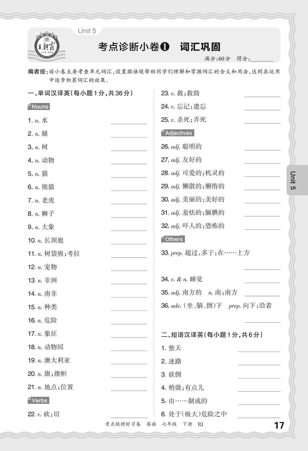 2024春下册七年级英语人教版 Unit 5 考点诊断小卷1 词汇巩固