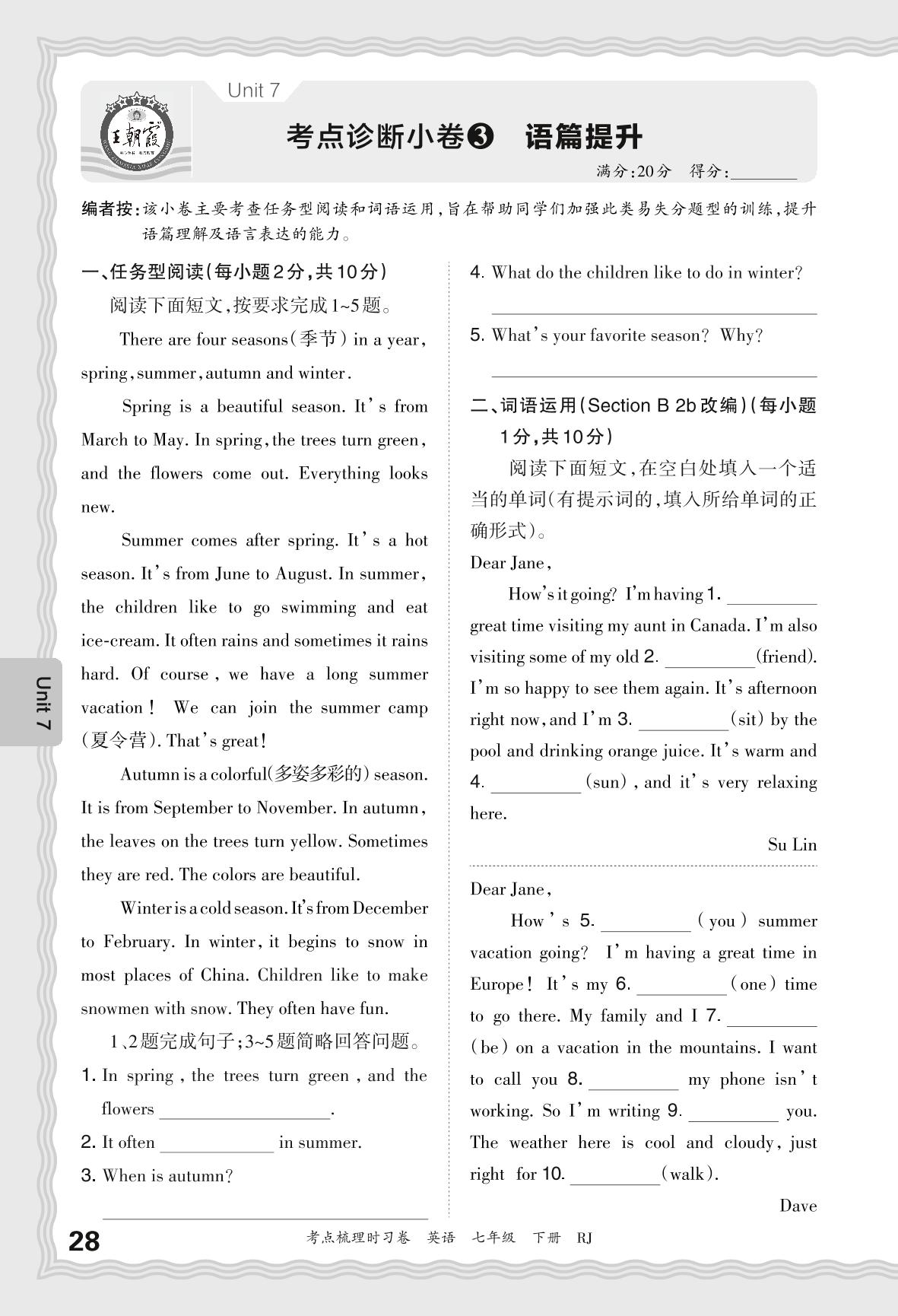 2024春下册七年级英语人教版 Unit 7 考点诊断小卷3 语篇提升