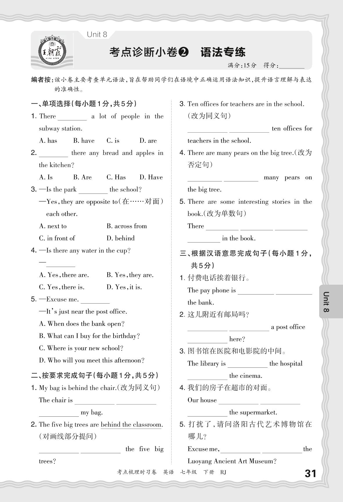 2024春下册七年级英语人教版 Unit 8 考点诊断小卷2 语法专练