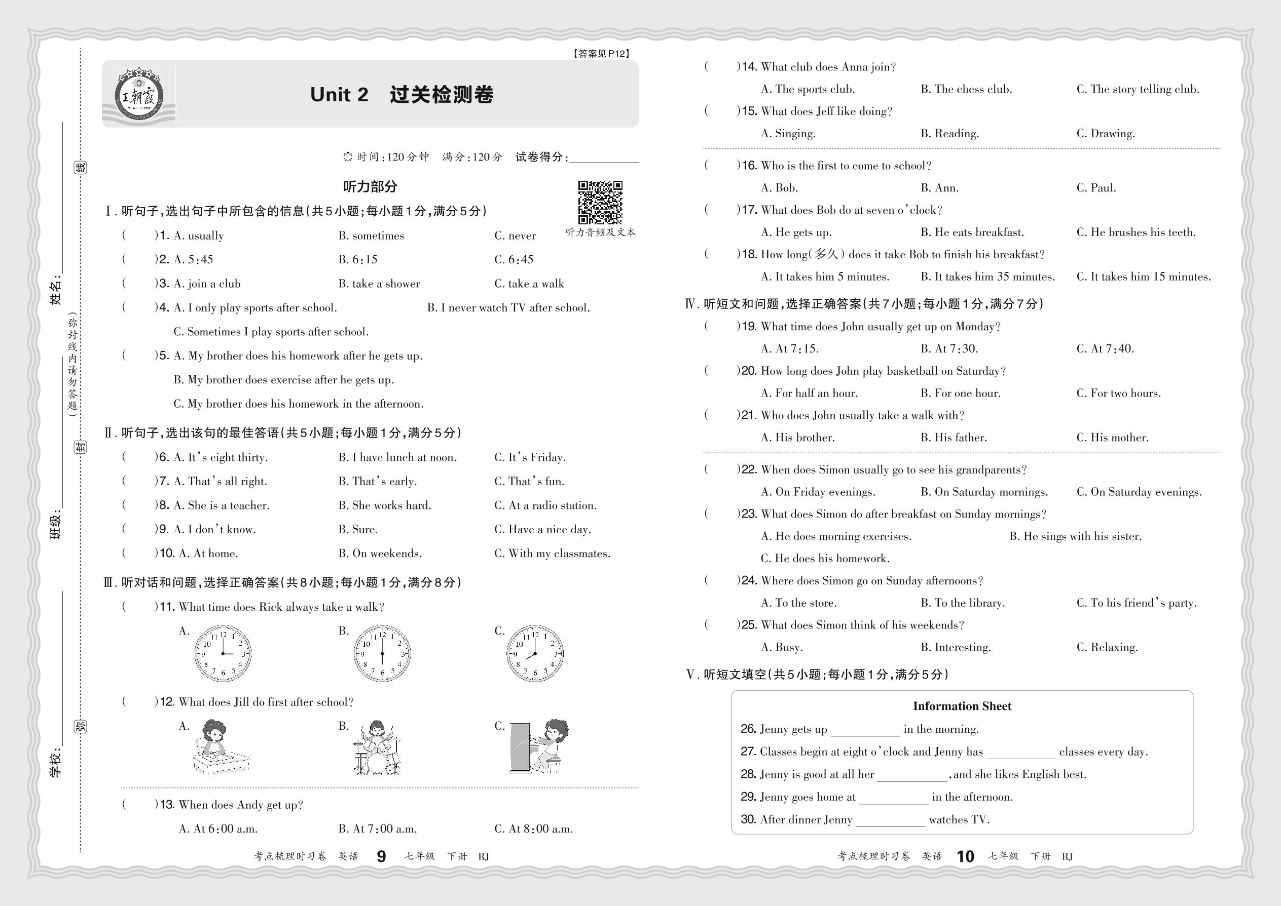 2024春下册七年级英语人教版 Unit 2 过关检测卷