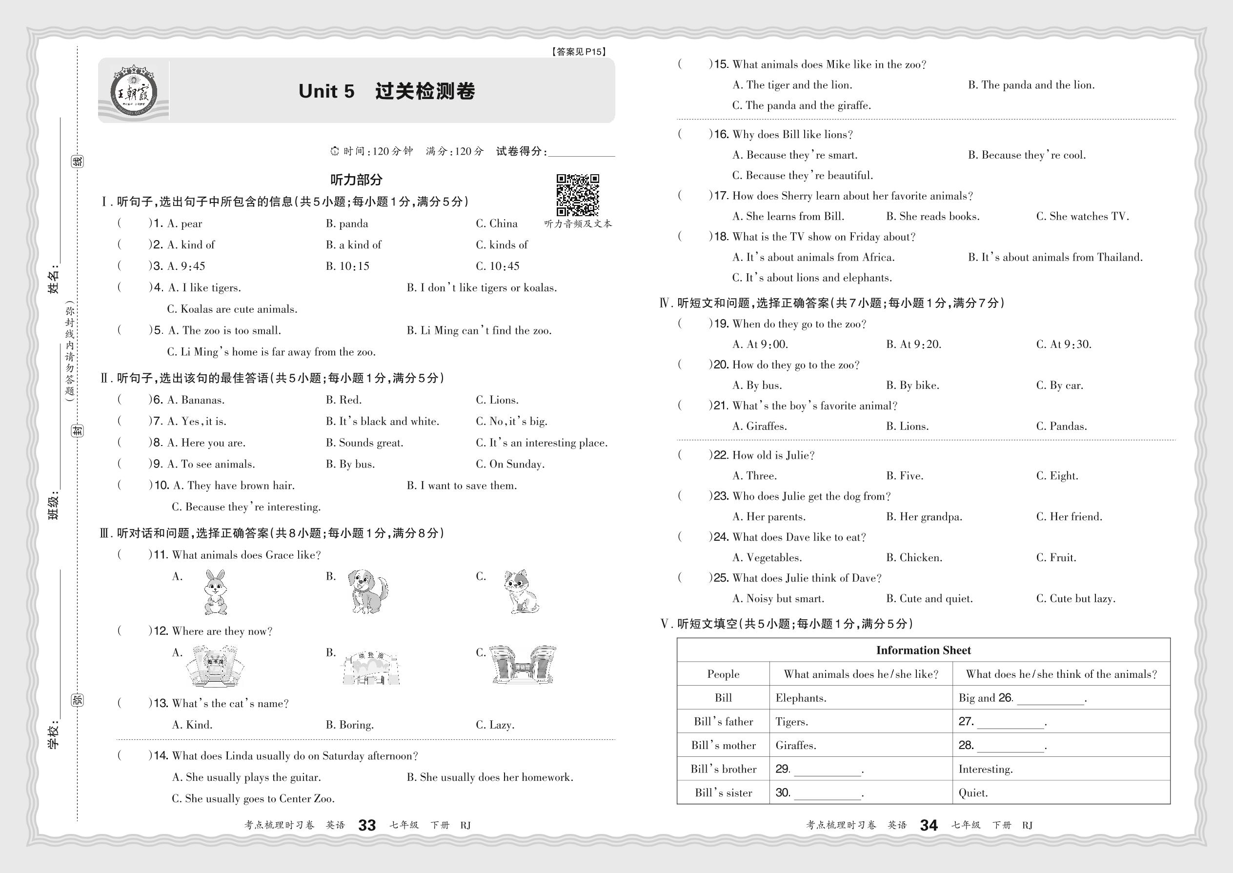 七年级英语人教版下册单元卷