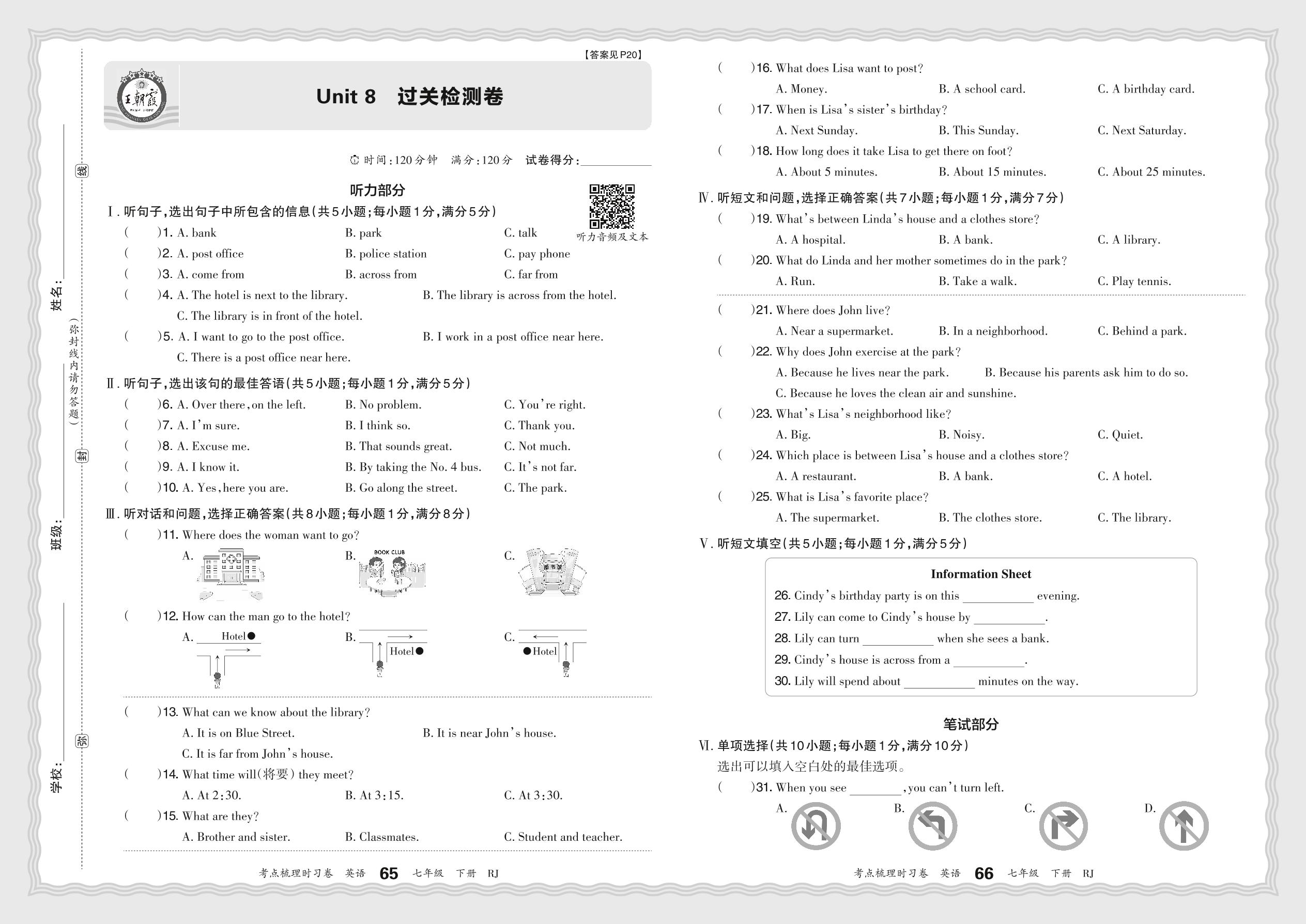 2024春下册七年级英语人教版 Unit 8 过关检测卷