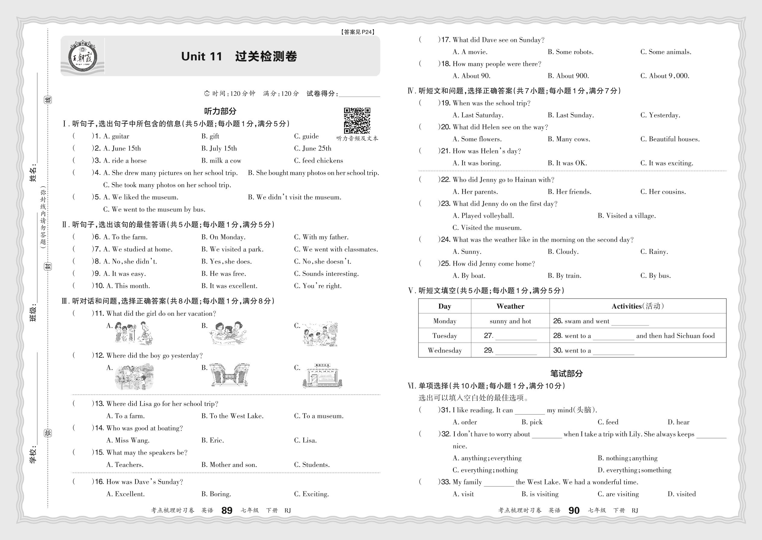 2024春下册七年级英语人教版 Unit 11 过关检测卷