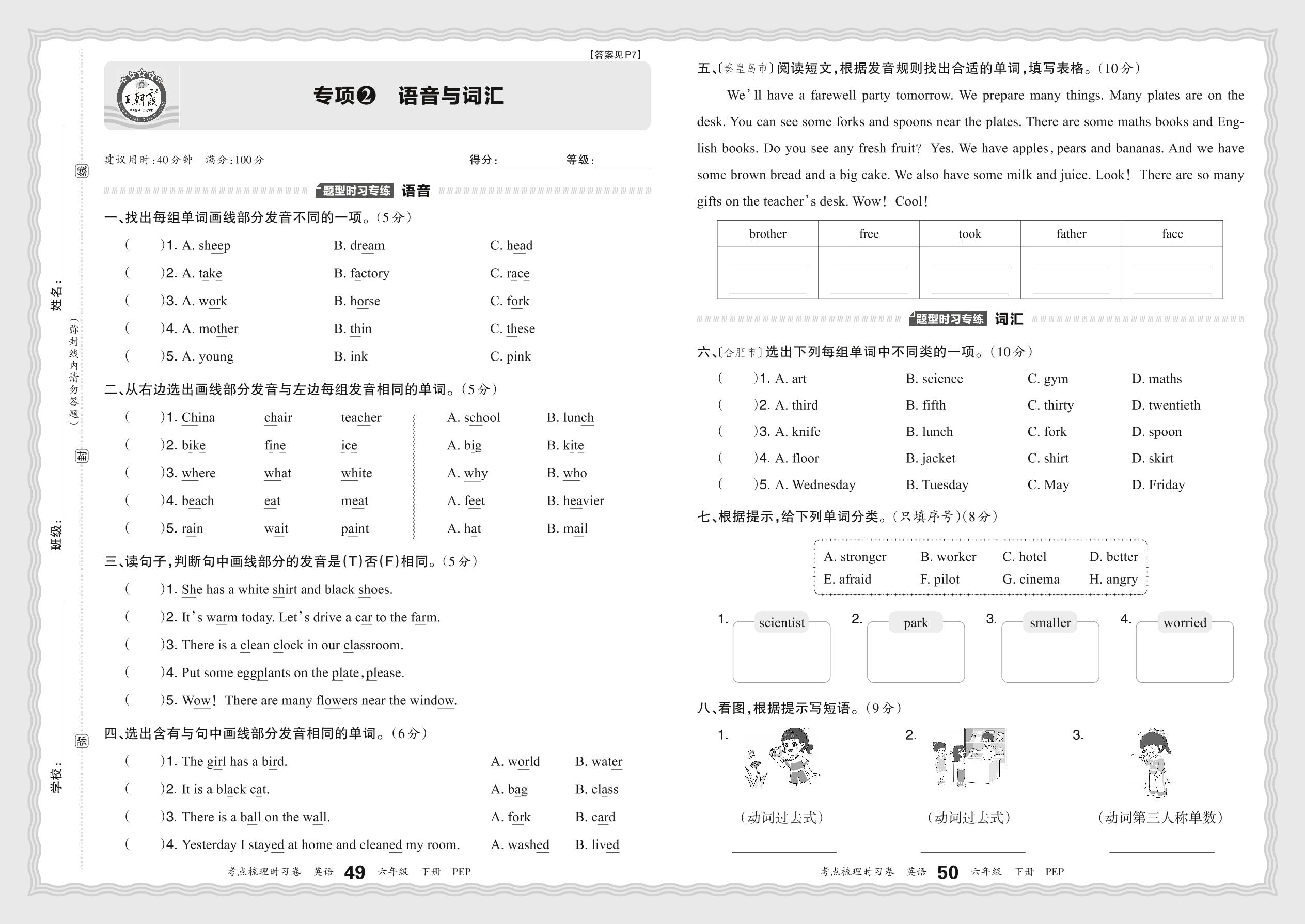 2024春下册六年级英语人教PEP版 期末专项卷KD版·语音与词汇【2】
