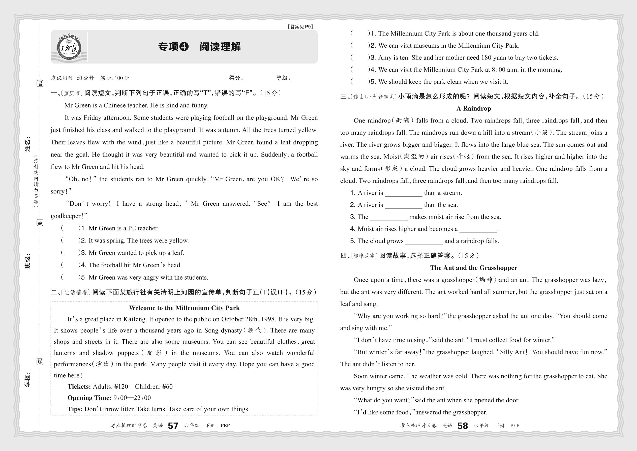 2024春下册六年级英语人教PEP版 期末专项卷KD版·阅读理解【4】